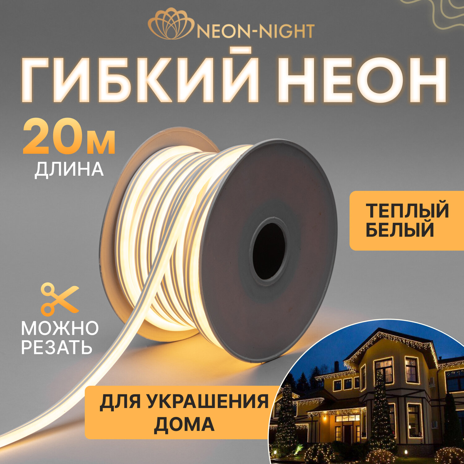 Гибкий неон NEON-NIGHT, теплый белый свет, 120 LED/м, 10 м с комплектом подключения 2 300 ₽