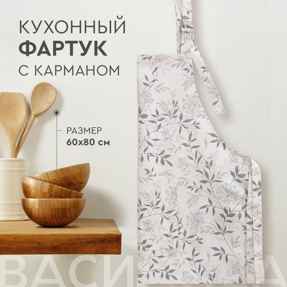 10 цен на Фартук кухонный Василиса 60х80 см, с карманом, Рогожка, Акация