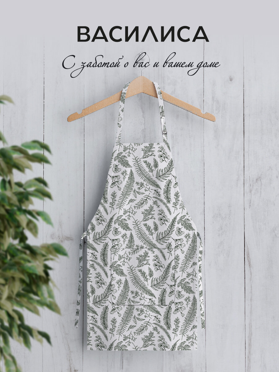 10 цен на Фартук кухонный Василиса 60х80 см, с карманом, Рогожка, Травы