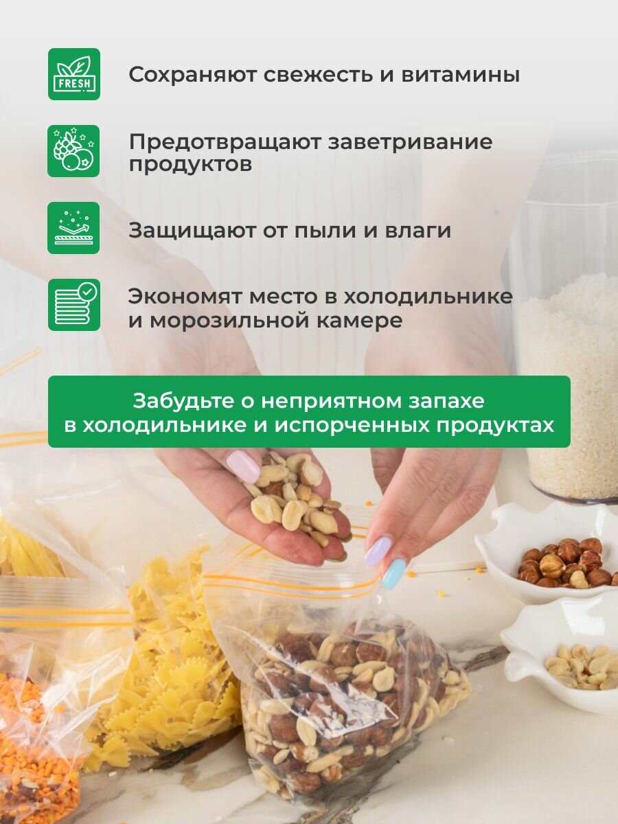 Зип пакеты для заморозки и хранения с двойным замком Домовушка 1,2л, 20,5х 22 см, 20 штук информация: