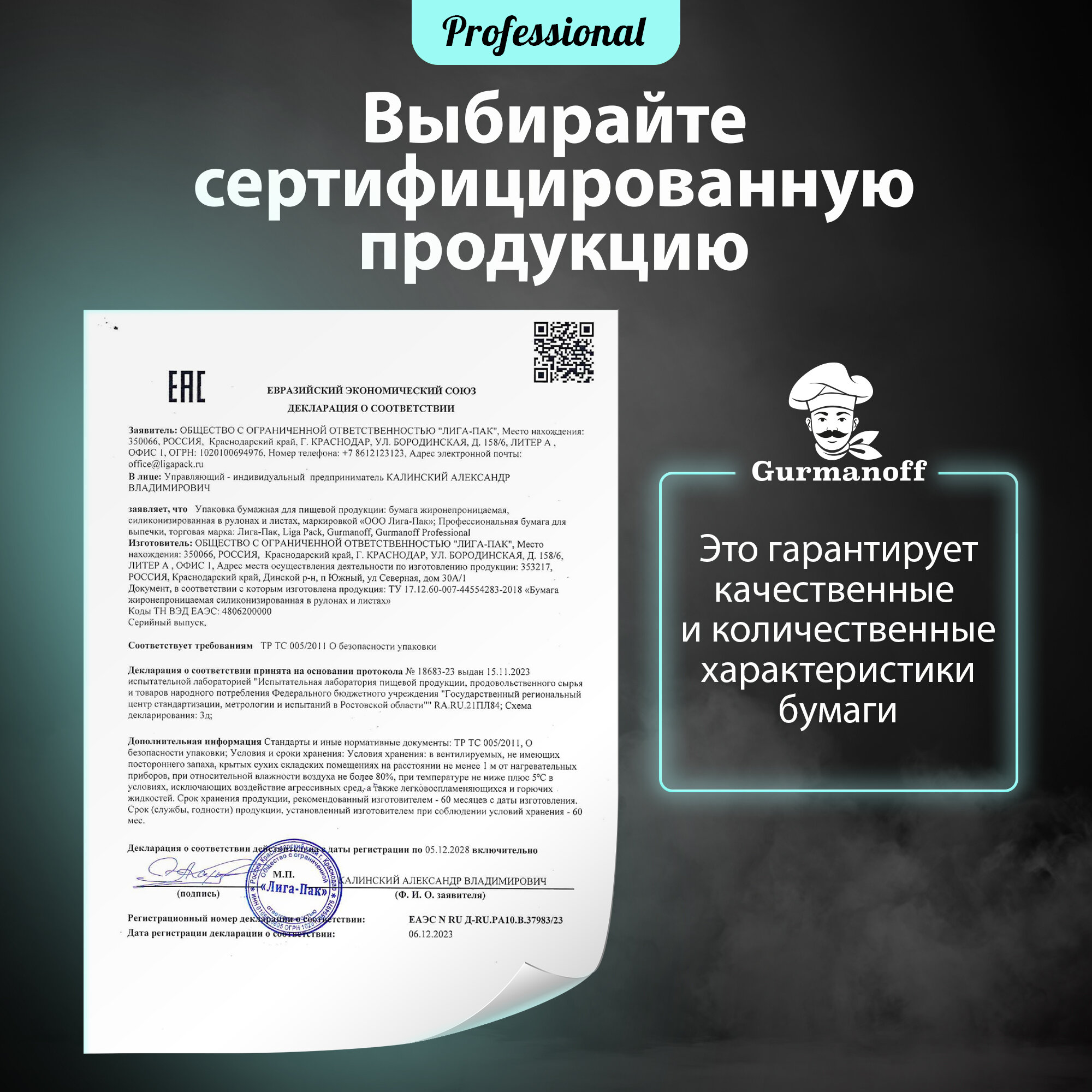 Бумага для выпечки силиконизированная Gurmanoff 500 листов 60см х 40см многоразовая белый / пергамент информация: