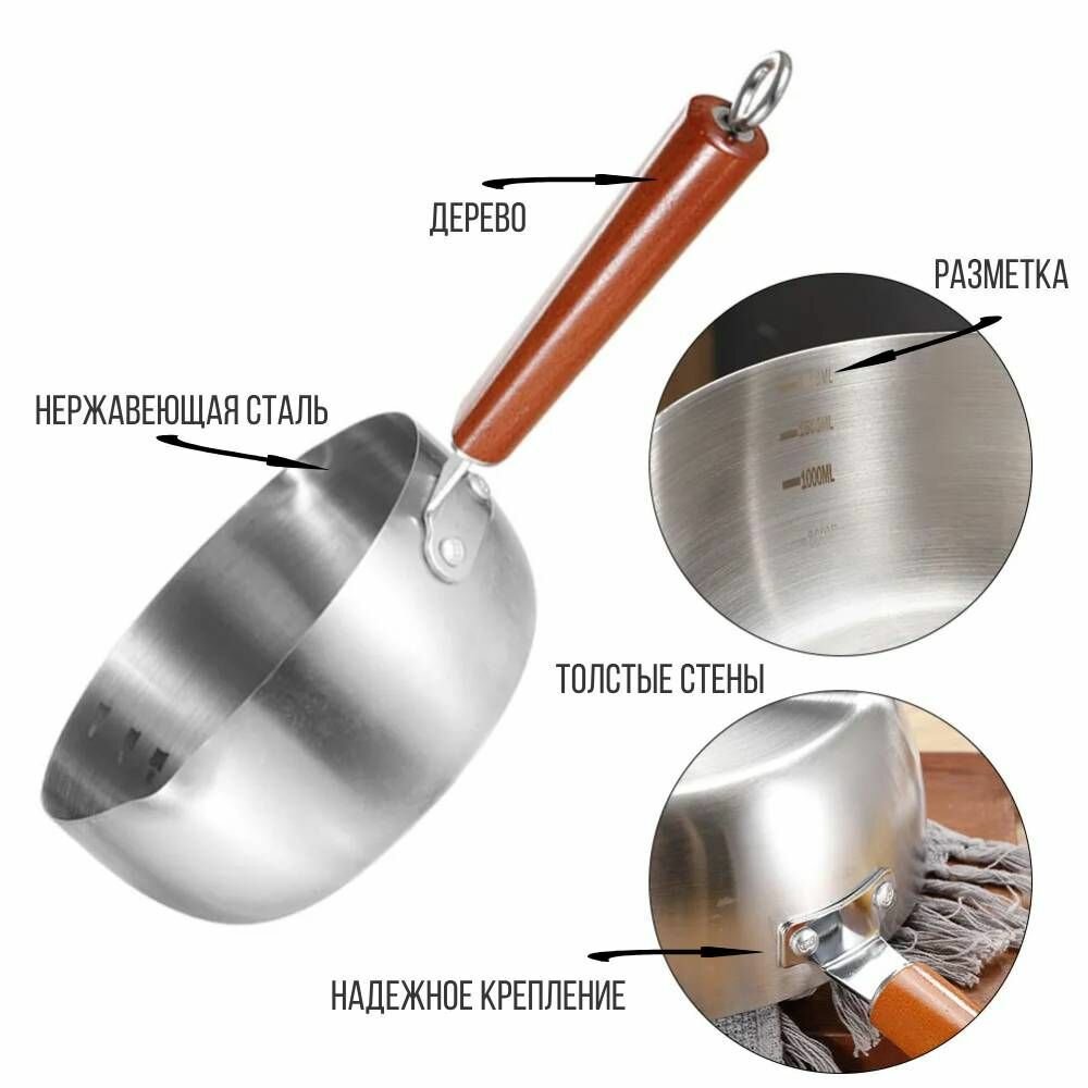 Кастрюля-ковш из нержавеющей стали для всех типов плит, с деревянной ручкой, 1.5 л. информация: