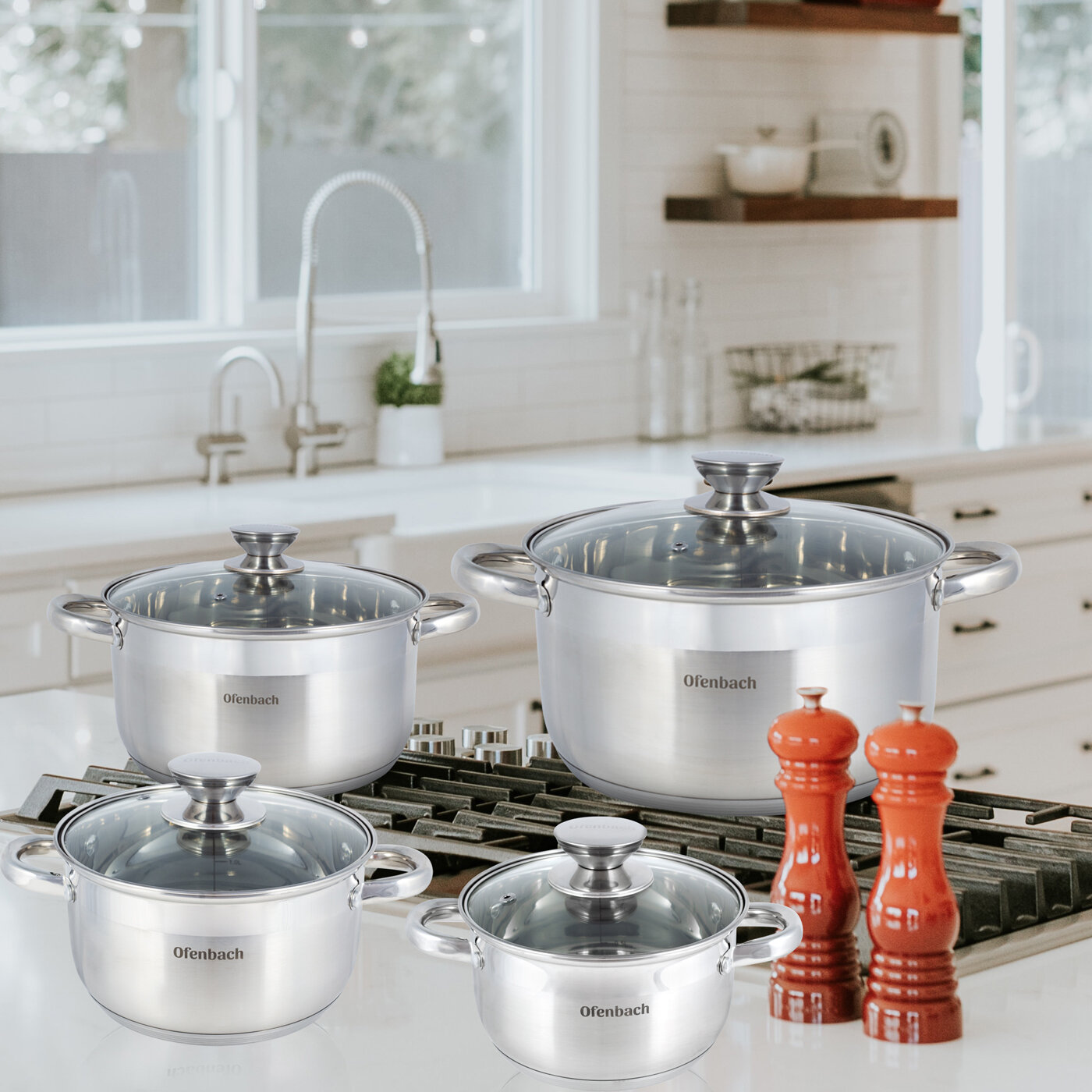 Набор кастрюль 8 предметов (1,1 л; 1,7 л; 2,4 л; 3,4 л) Ofenbach NB 100004 из нержавеющей стали (серебристый) информация: