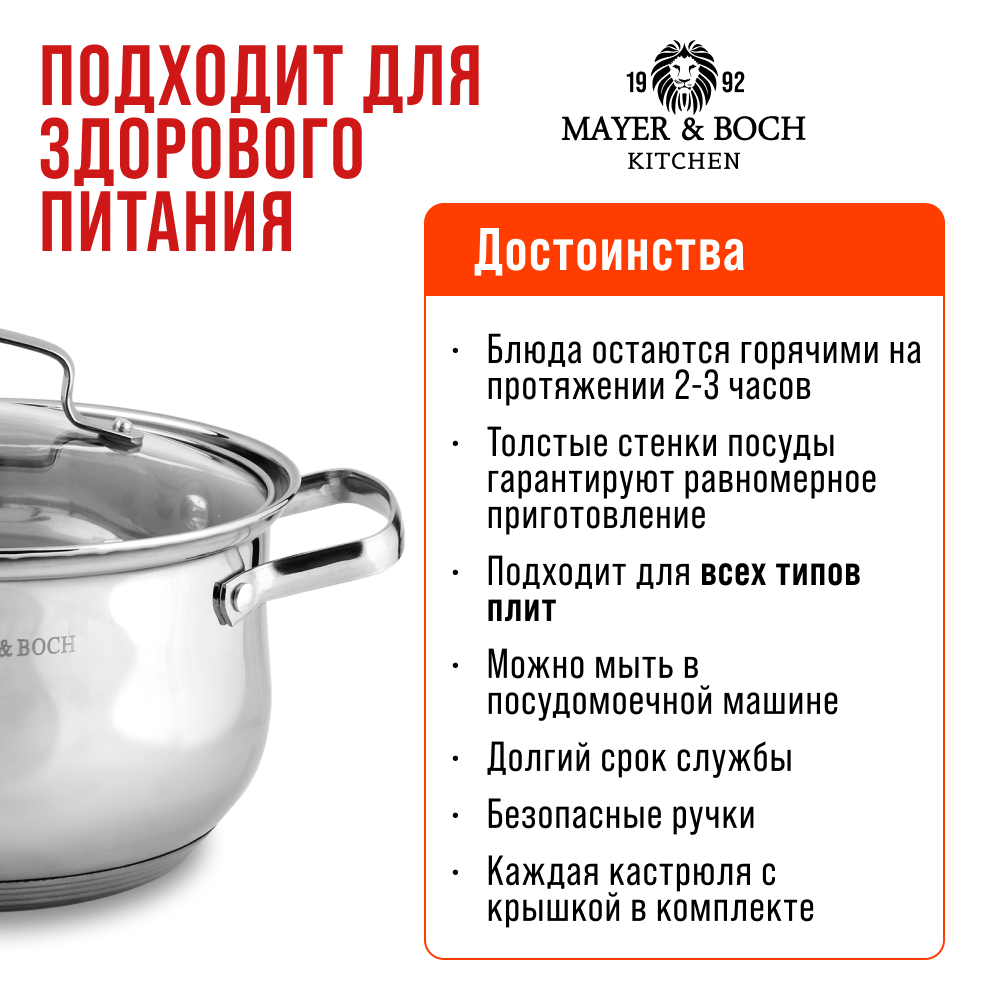 Набор кастрюль MAYER&BOCH из нержавеющей стали с крышками 30992 4 096 ₽