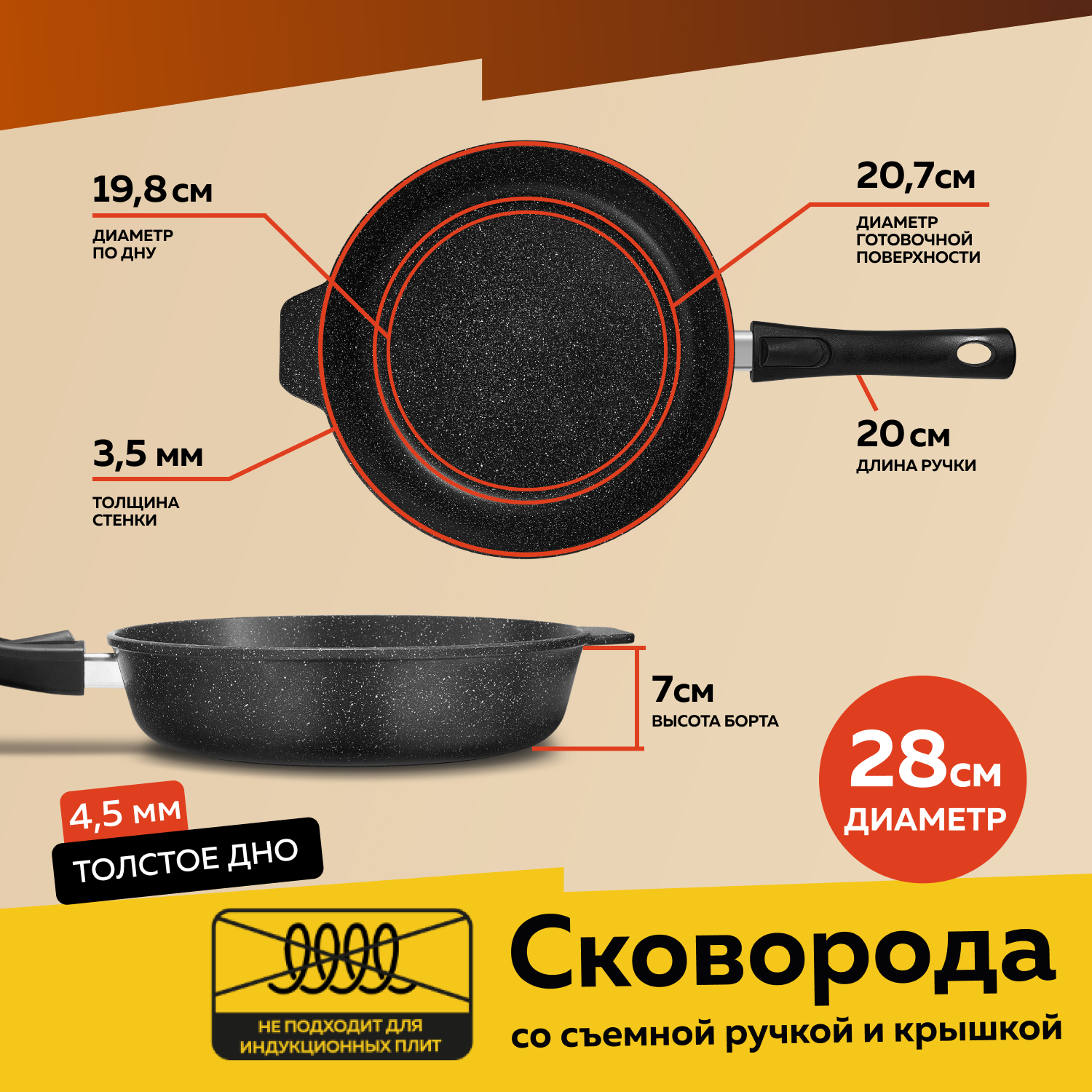 Cковорода с крышкой ALWA 28 см литая с антипригарным покрытием глубокая цвет мрамор информация: