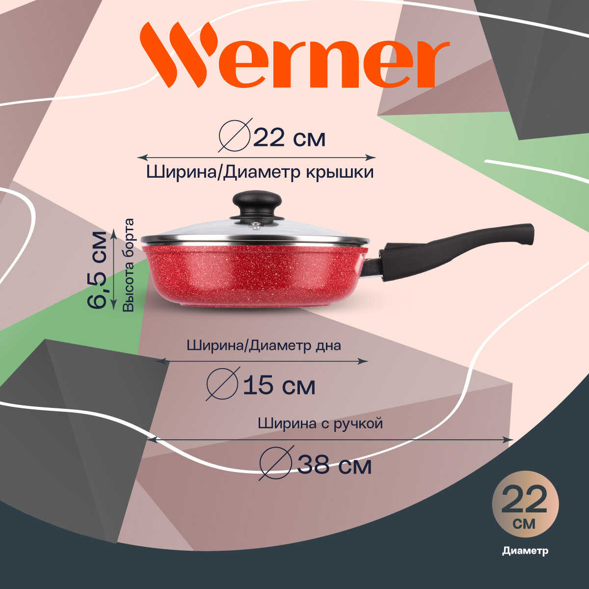 Отзывы на Сковорода из литого алюминия Werner Letizia 52596 22 см красный