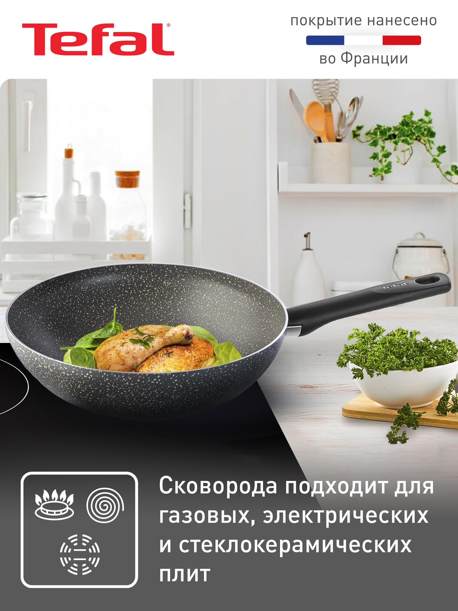 Сковорода вок Tefal Natural Cook 04213628, диаметр 28 см, с индикатором температуры и антипригарным покрытием информация: