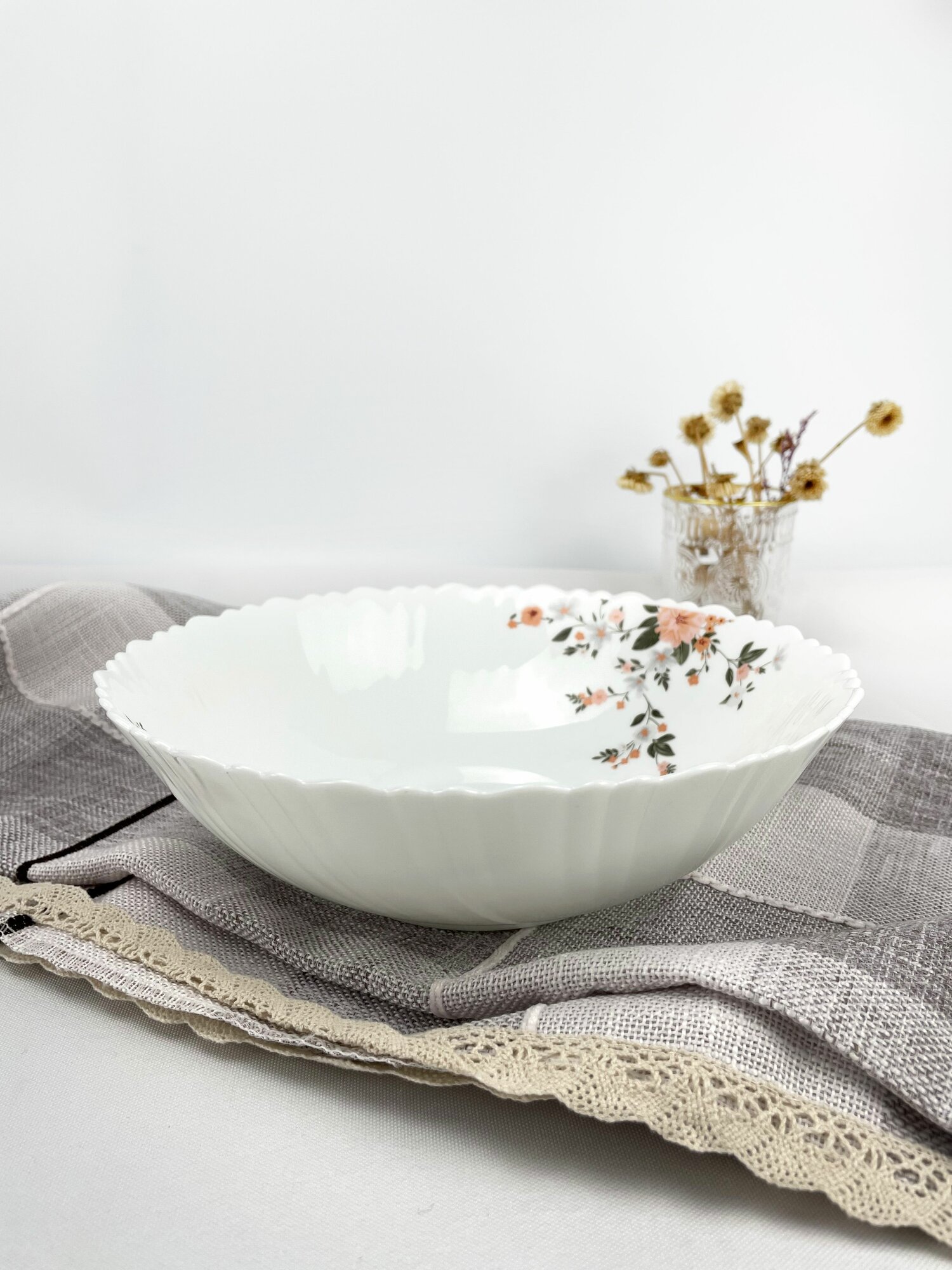 Салатник 480 мл 155 мм тарелка глубокая WHITE LILY "Кустовая роза" 6 штук
