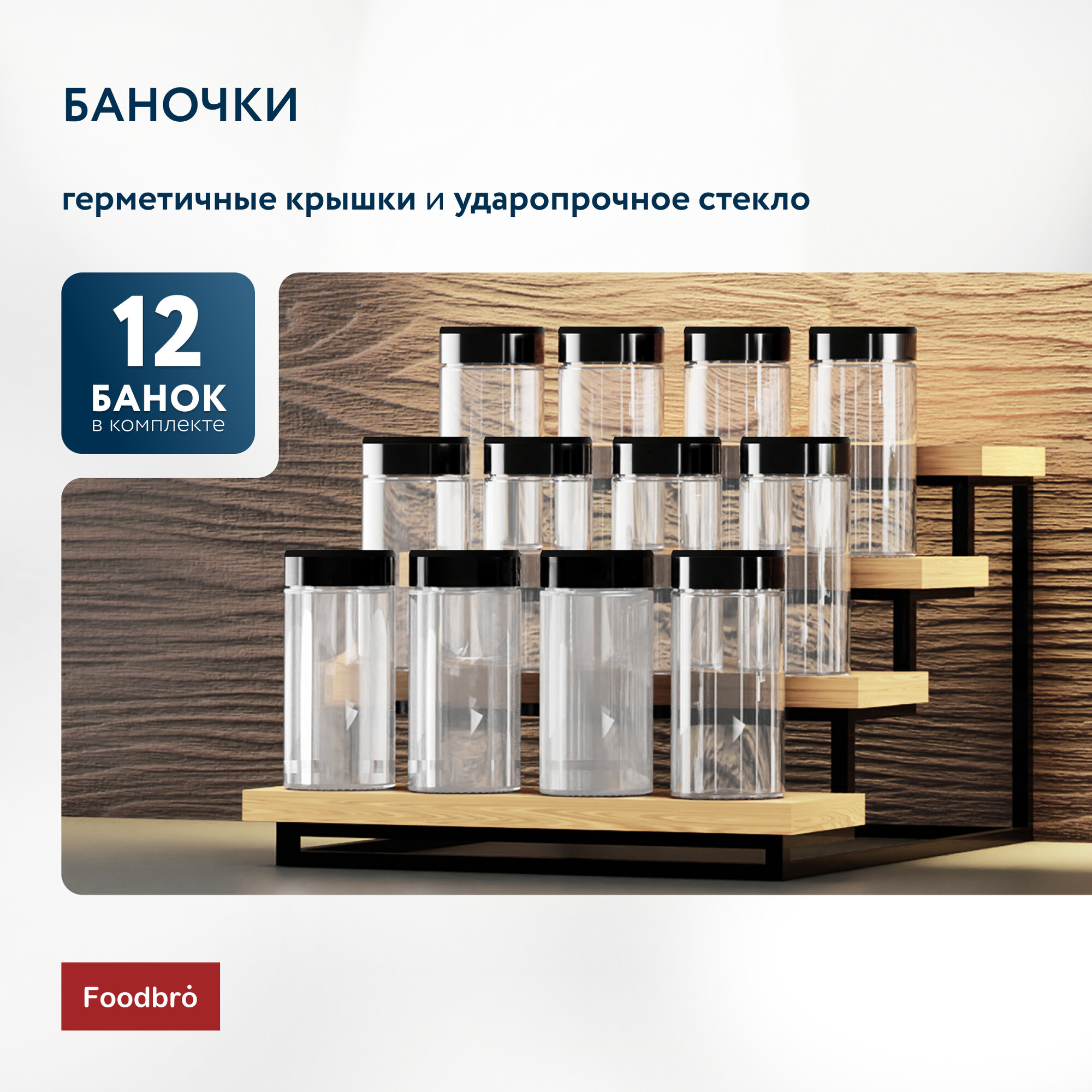 Классический набор для специй на подставке, 12 шт по 100 мл Foodbro (Черный) информация: