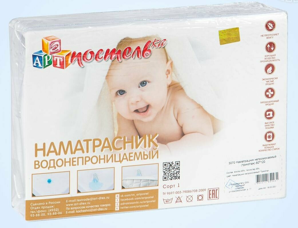 Детский наматрасник непромокаемый трикотажный 60х120 информация: