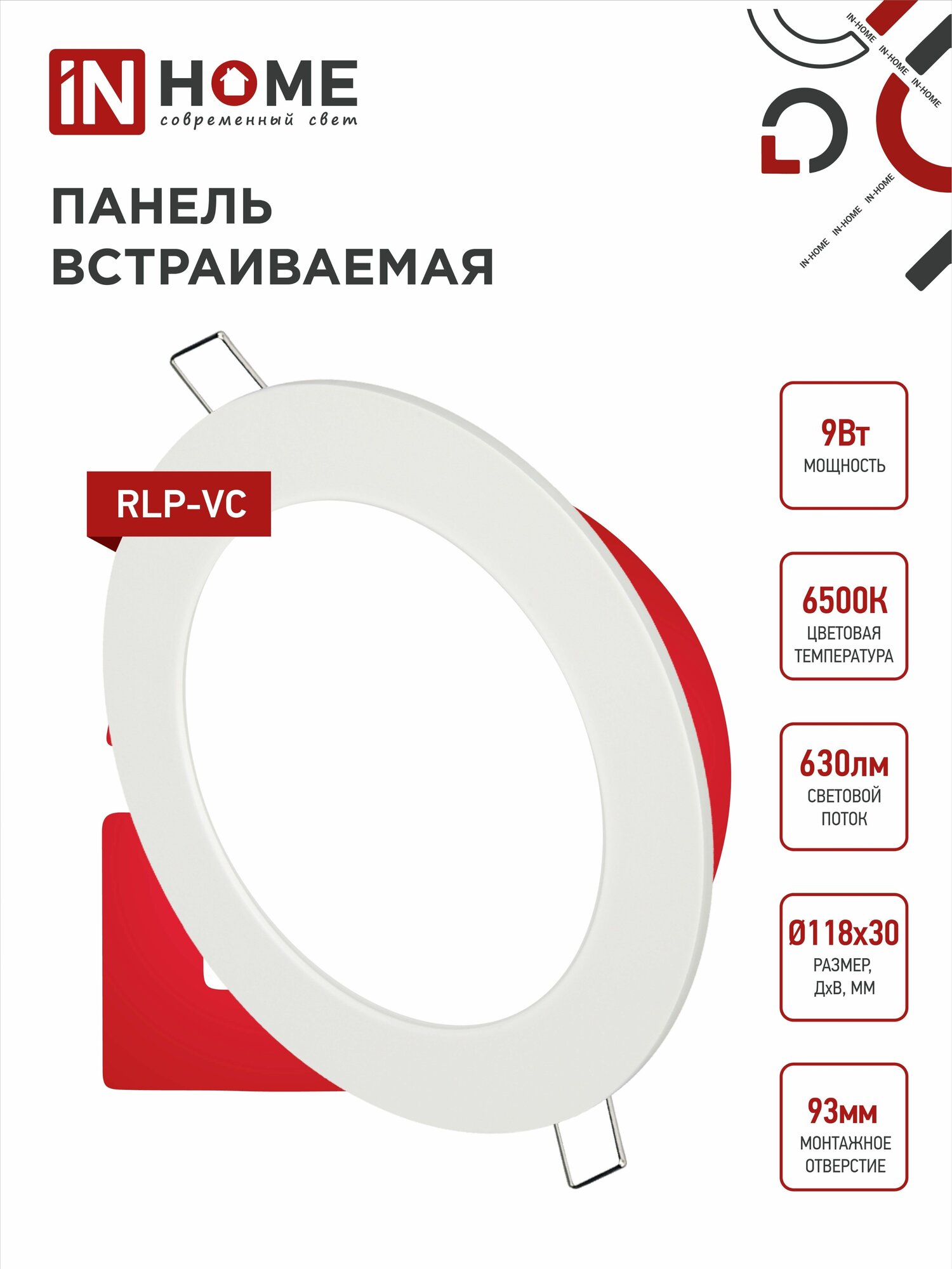 Отзывы на Светильник светодиодный RLP-VC 9Вт 6500К IP40 630лм 230В 118мм кругл. встраив. панель бел. IN HOME 4690612024523