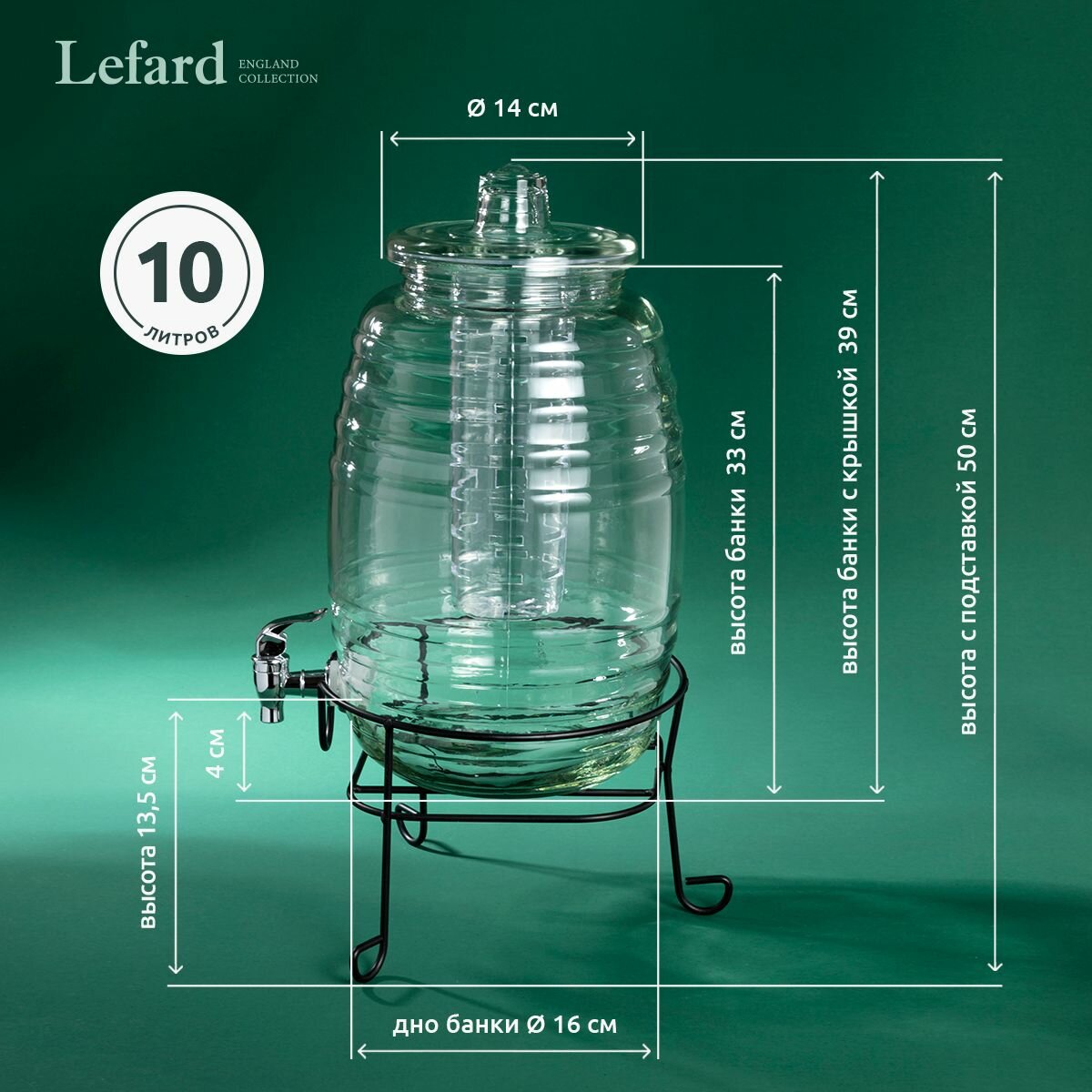 10 цен на Диспенсер для напитков из стекла с краном 10 л., на подставке, размеры: 22,3 х 22,3 х 36 см