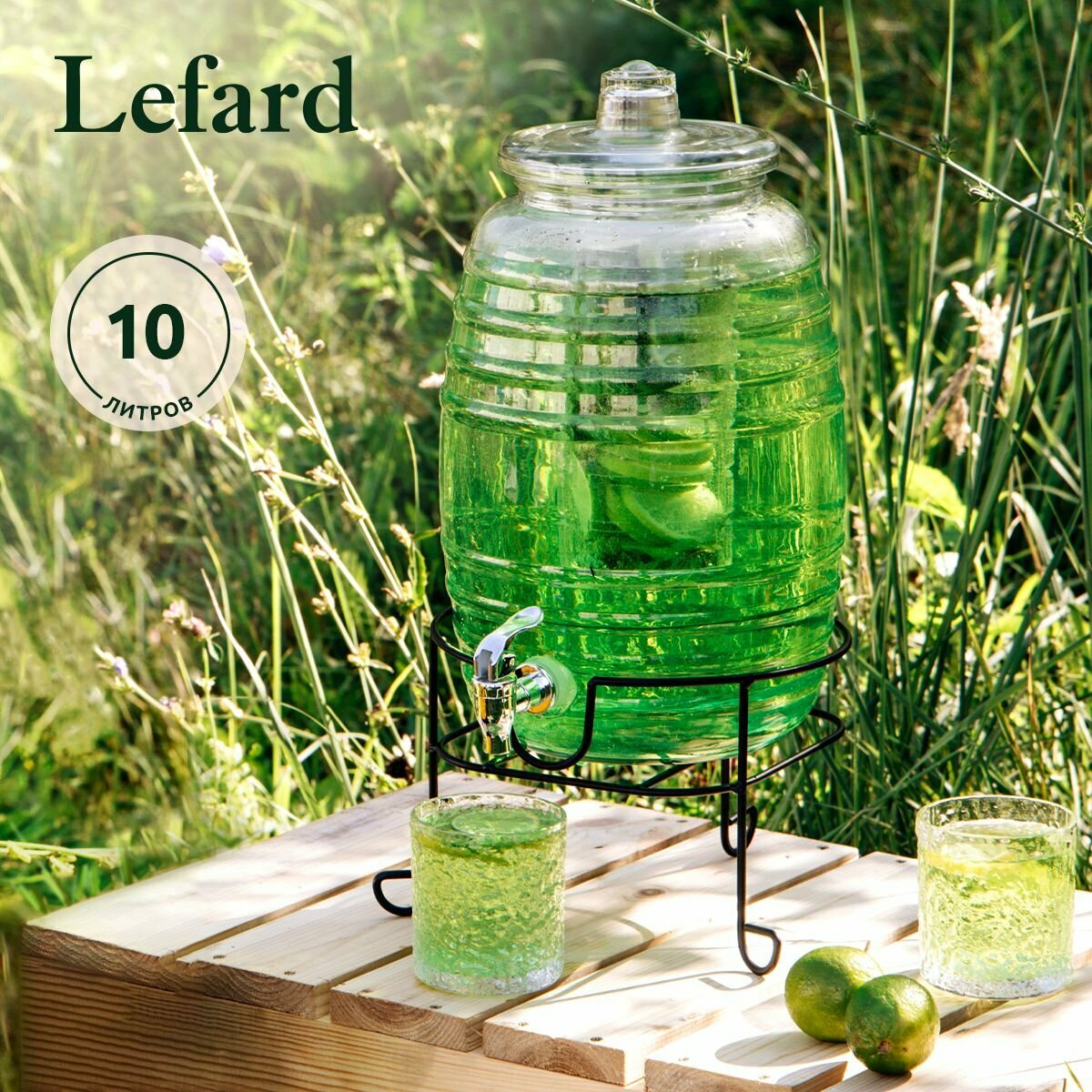 Диспенсер для напитков из стекла с краном 10 л., на подставке, размеры: 22,3 х 22,3 х 36 см информация: