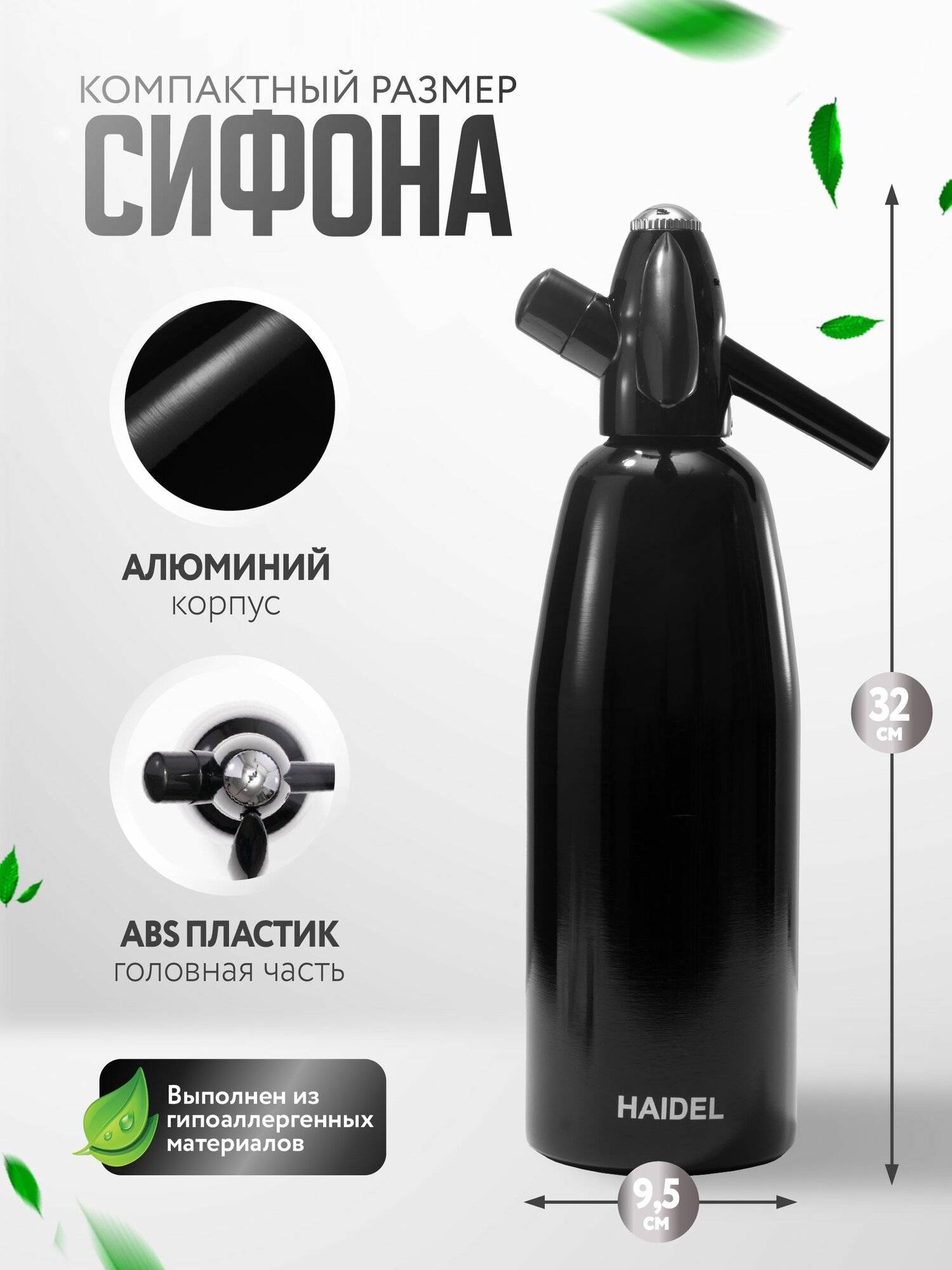 Сифон для газирования воды и приготовления лимонадов как в СССР, HAIDEL RW 2, чёрный 4 090 ₽