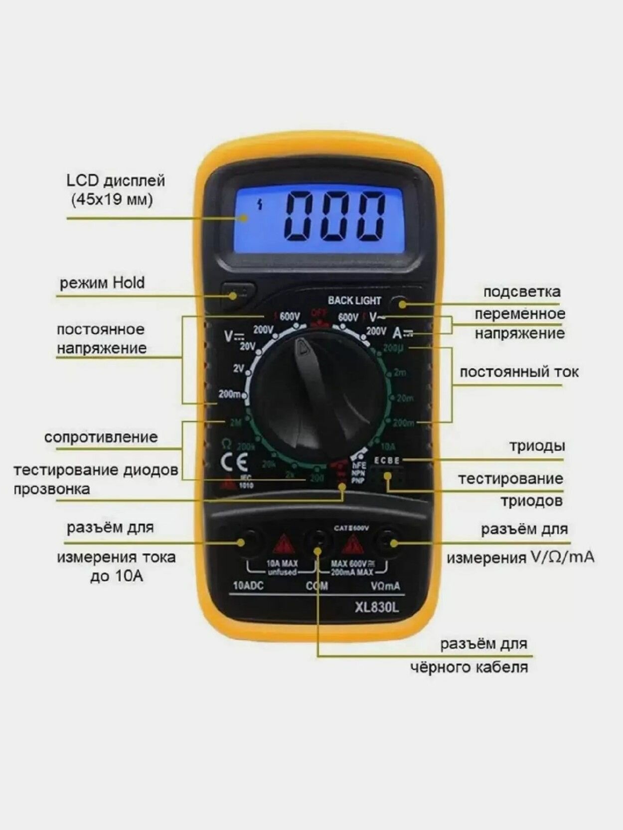 Мультиметр цифровой универсальный с подставкой, тестер информация: