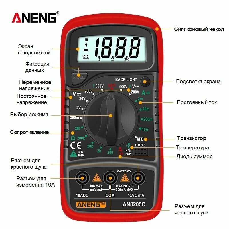 10 цен на Мультиметр с подставкой и функциями автоматического выключения и подсветки дисплея