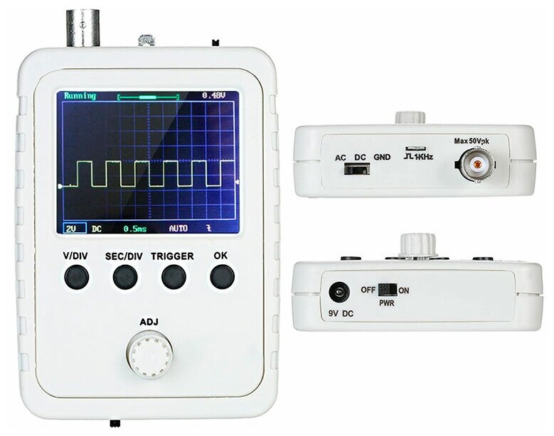 Осциллограф с ЖК-дисплеем 2,8 дюйма, портативный, 10МГц, 48МСэм/с, функция хранения данных