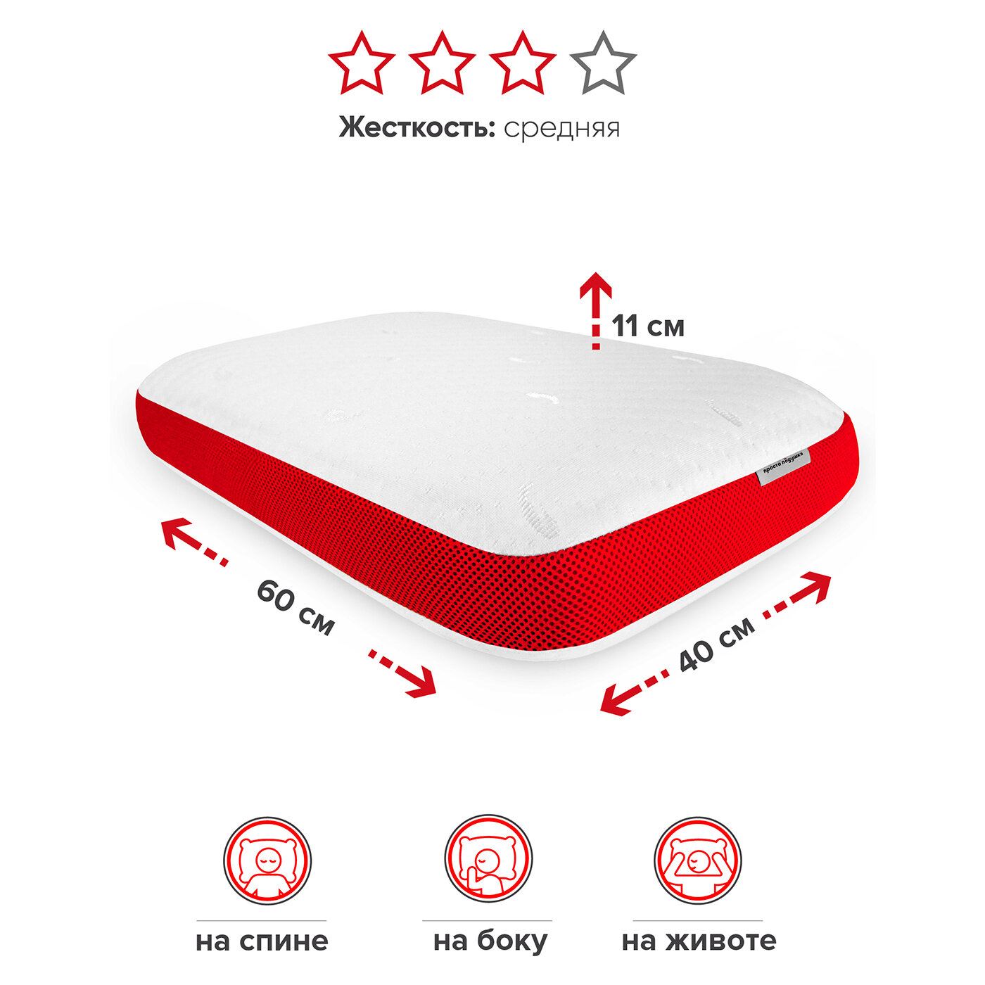 Ортопедическая подушка с эффектом памяти 40х60х11 см "Просто Подушка" №3 классической формы упругая информация: