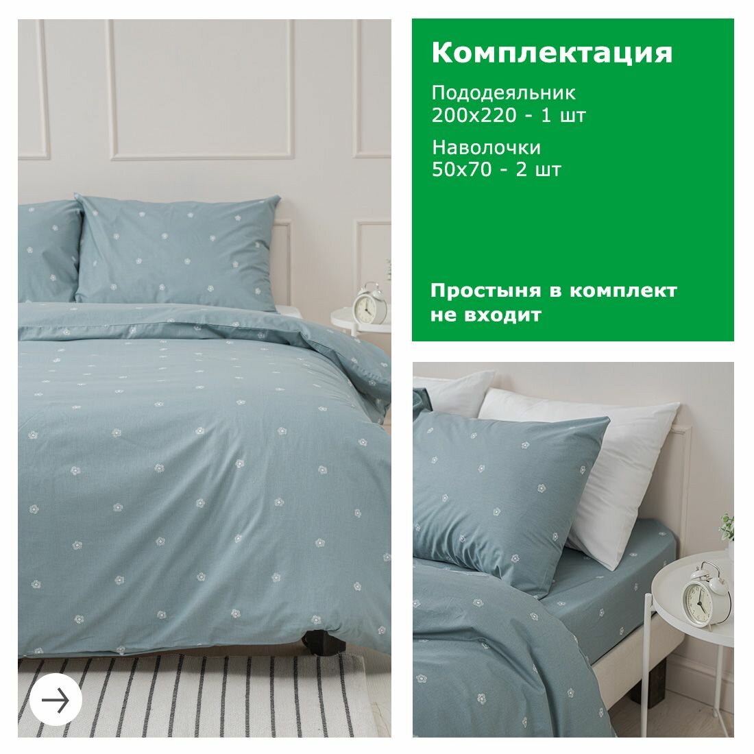Комплект постельного белья, 2 спальный YERRNA, наволочки 50х70 2шт, перкаль, серо-голубой цветы, с2082шв/209861 1 537 ₽