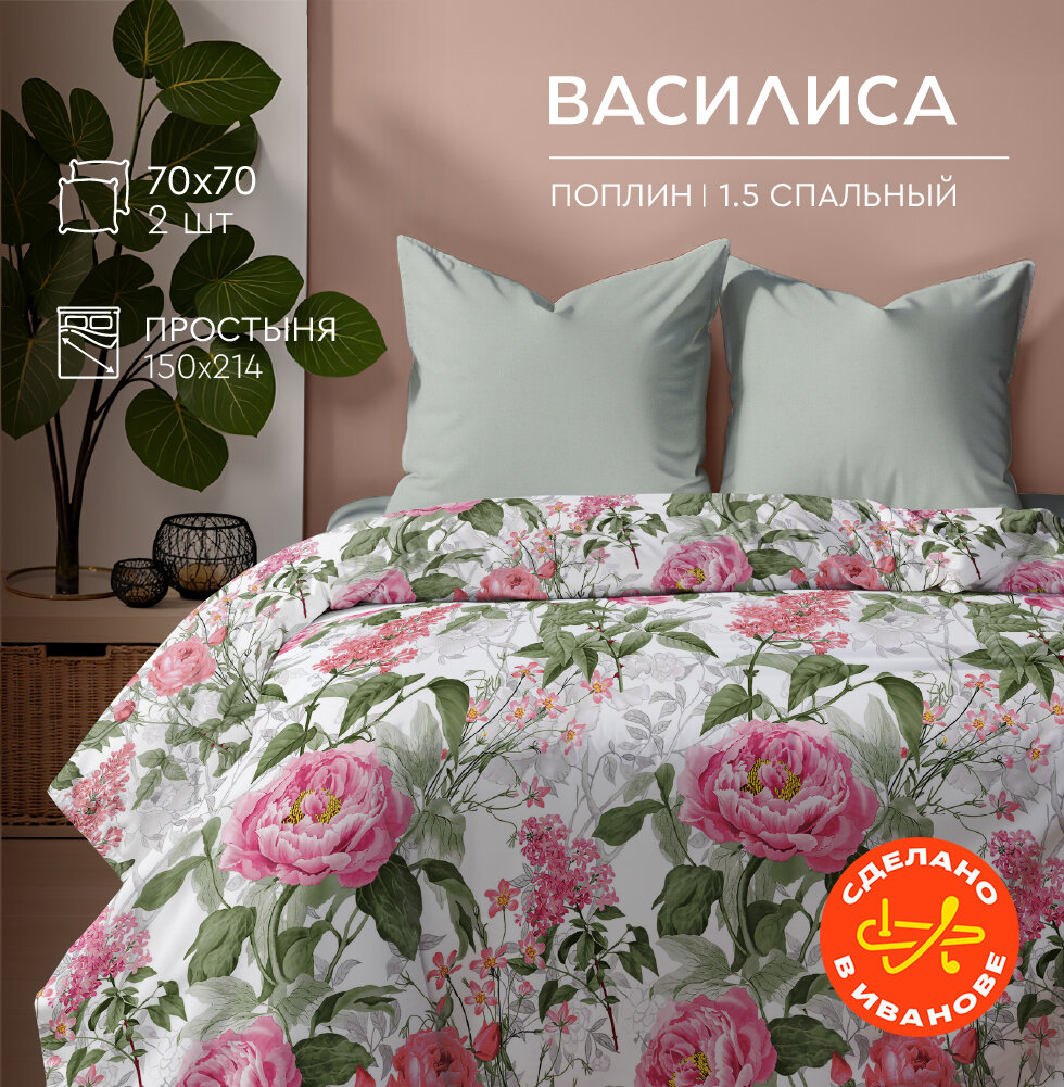Постельное белье Василиса 1,5 спальное, Поплин, наволочки 70х70 см, Пралине информация:
