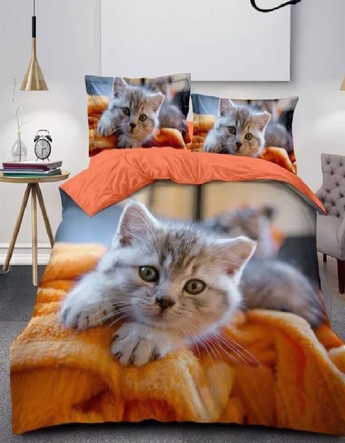Отзывы на Комплект Постельного белья 2-х спальное Оранжевый Котенок / Двуспальное / простыня 180x220 / пододеяльник 180x220 / Наволочки 70x70-2