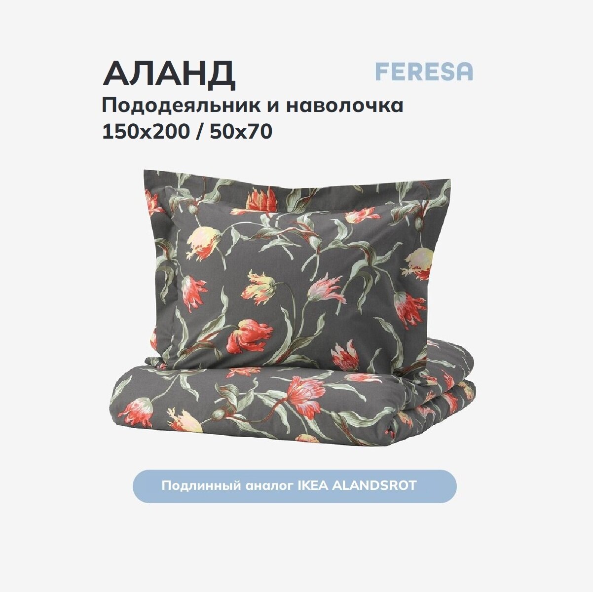 10 цен на Постельное белье 1,5 спальное Feresa аланд/ÅLANDSROT , поплин, пододеяльник 150 х 200, наволочки 50x70 (1 шт), аналог икеа
