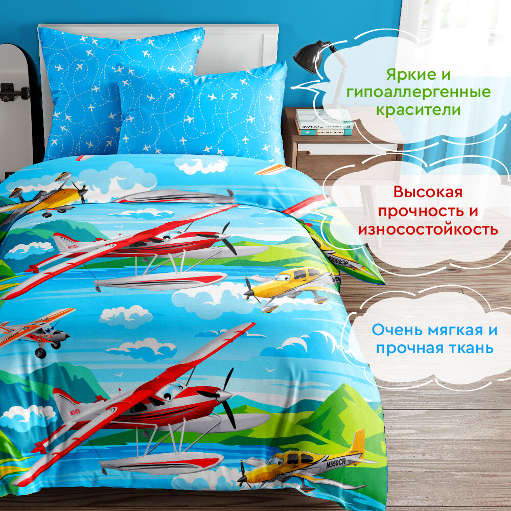 Постельное белье для детей Василек 1,5-спальное, Бязь, наволочка 70х70, Самолеты информация: