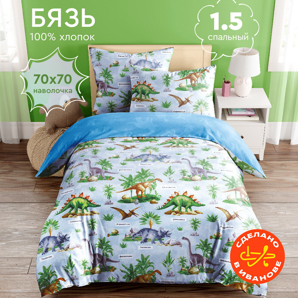 10 цен на Постельное белье Василек 1,5-спальное, Бязь, наволочка 70х70 см, Динозавры