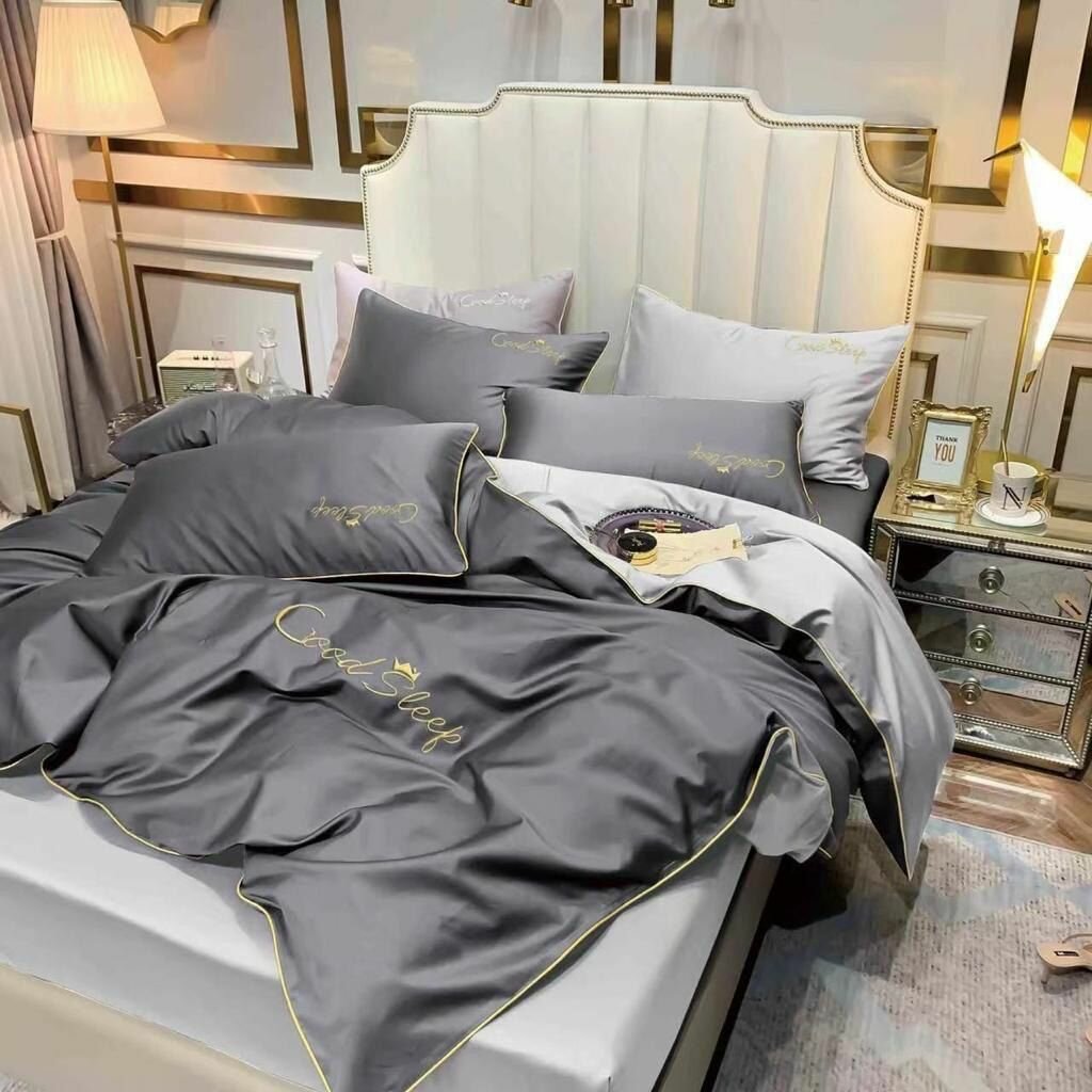 Отзывы на Комплект постельного белья Good Sleep из Сатина Евро Однотонное Хлопок Простыня 220x240 см Серый Темно-серый