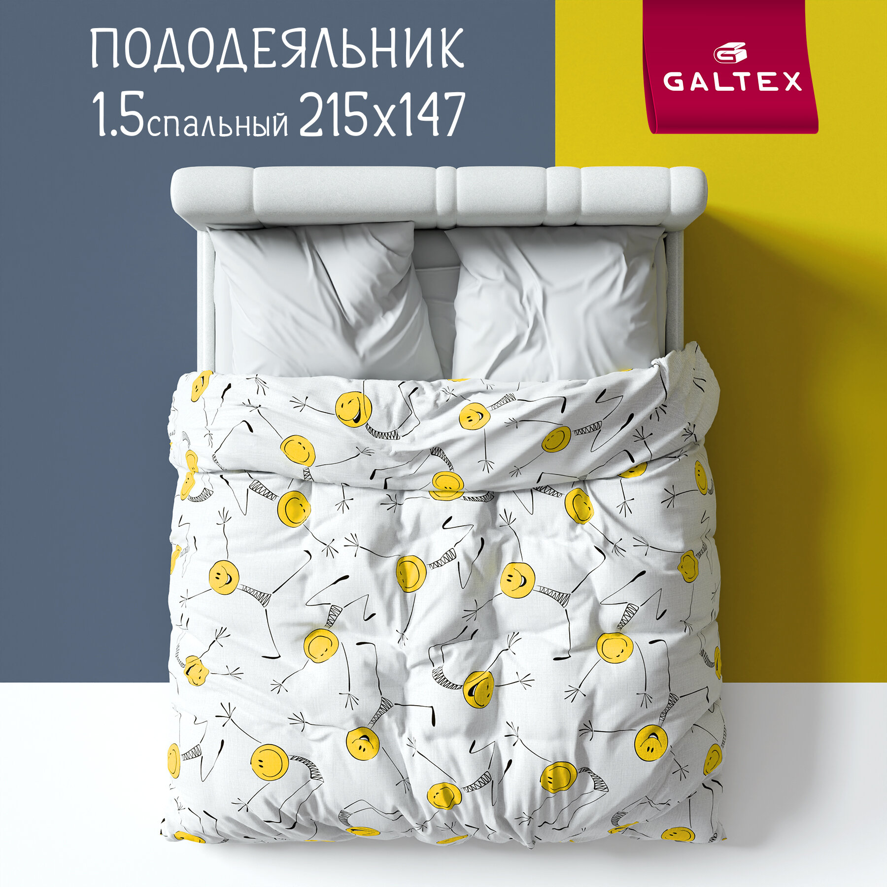 10 цен на Пододеяльник 1.5 спальный 147х215 Galtex Смайлы на белом фоне бязь 100% хлопок