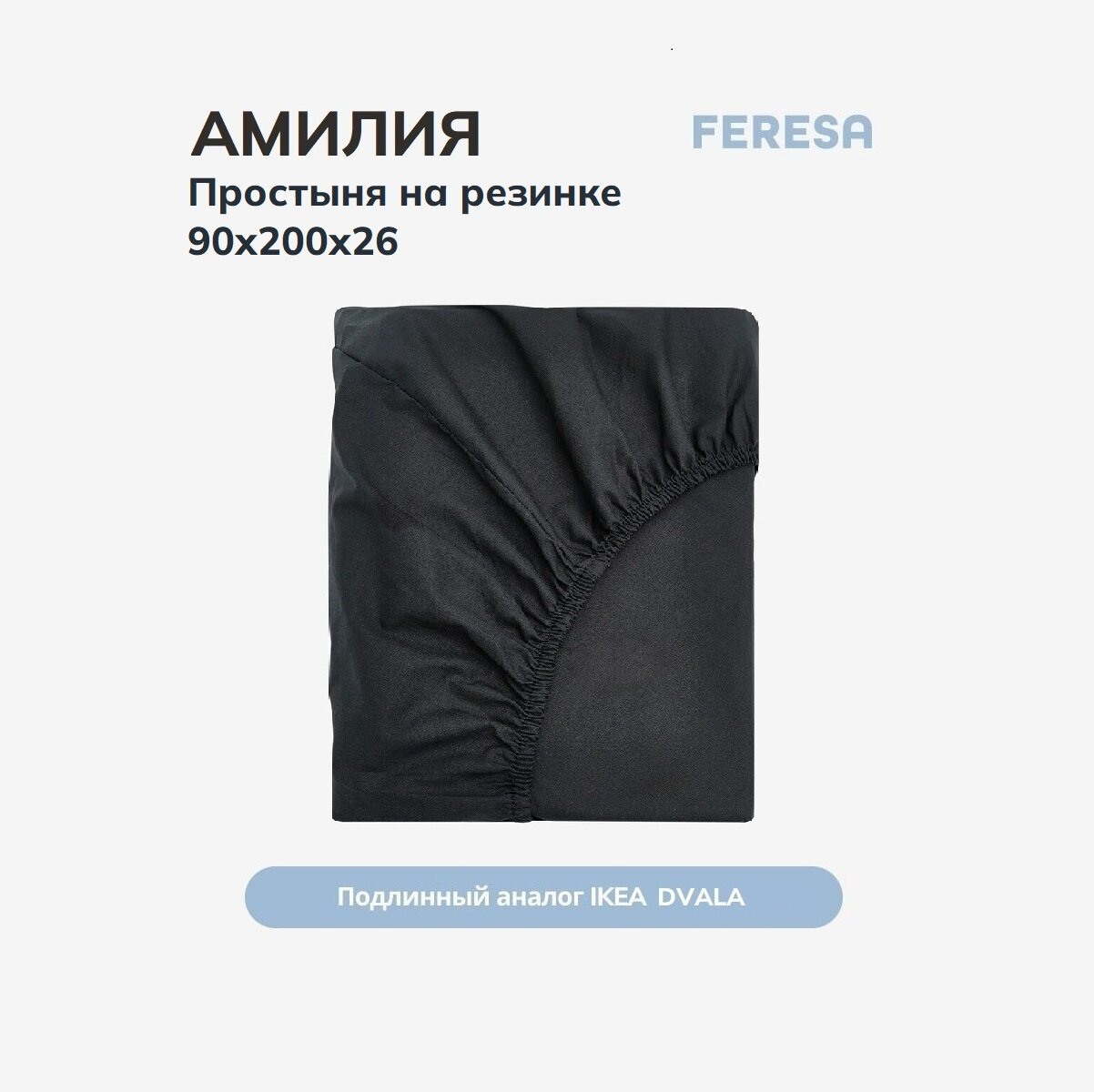 Простынь на резинке 90х200 см, поплин, черный, Feresa Hygge амилия/DVALA, аналог икеа 1 478 ₽