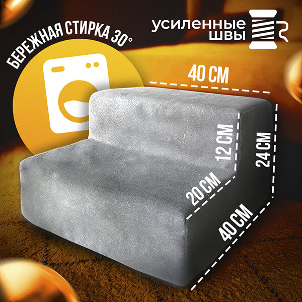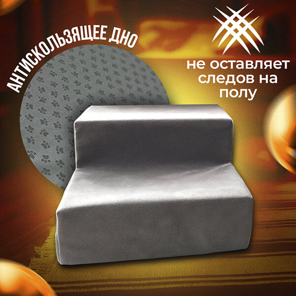 Лестница для собак, кошек на 2 ступени Лесенка для собак STEP 2S, серая, 40х40х24, высота 24 см. информация: