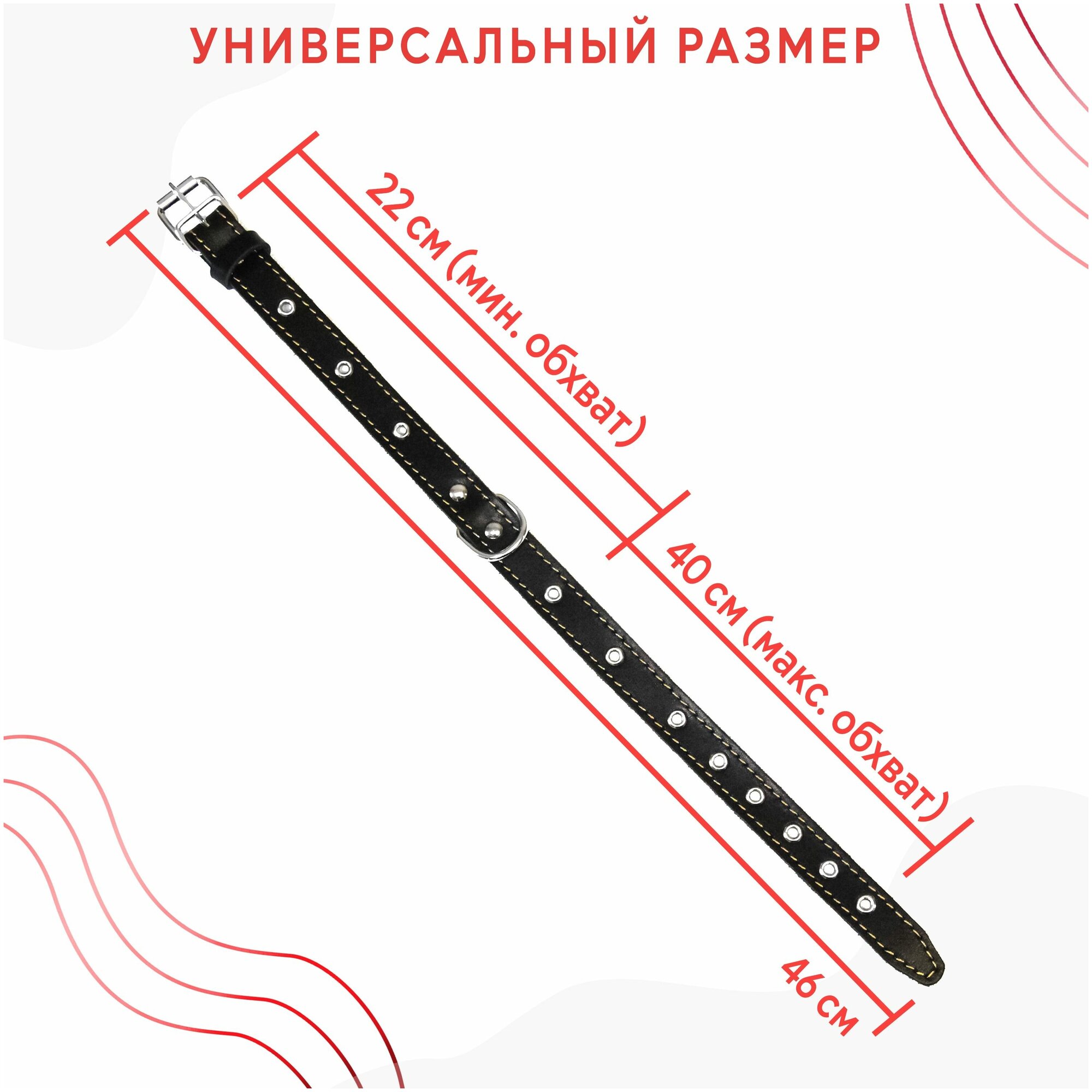 Кожаный ошейник (обхват шеи 22-40 см) для собак Чёрный информация: