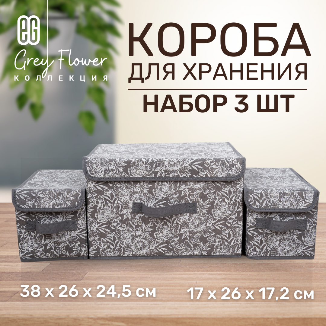 ЕГ Grey Flower Набор коробов 38х26х24,5 1 шт и 17x26x17,2 2 шт информация: