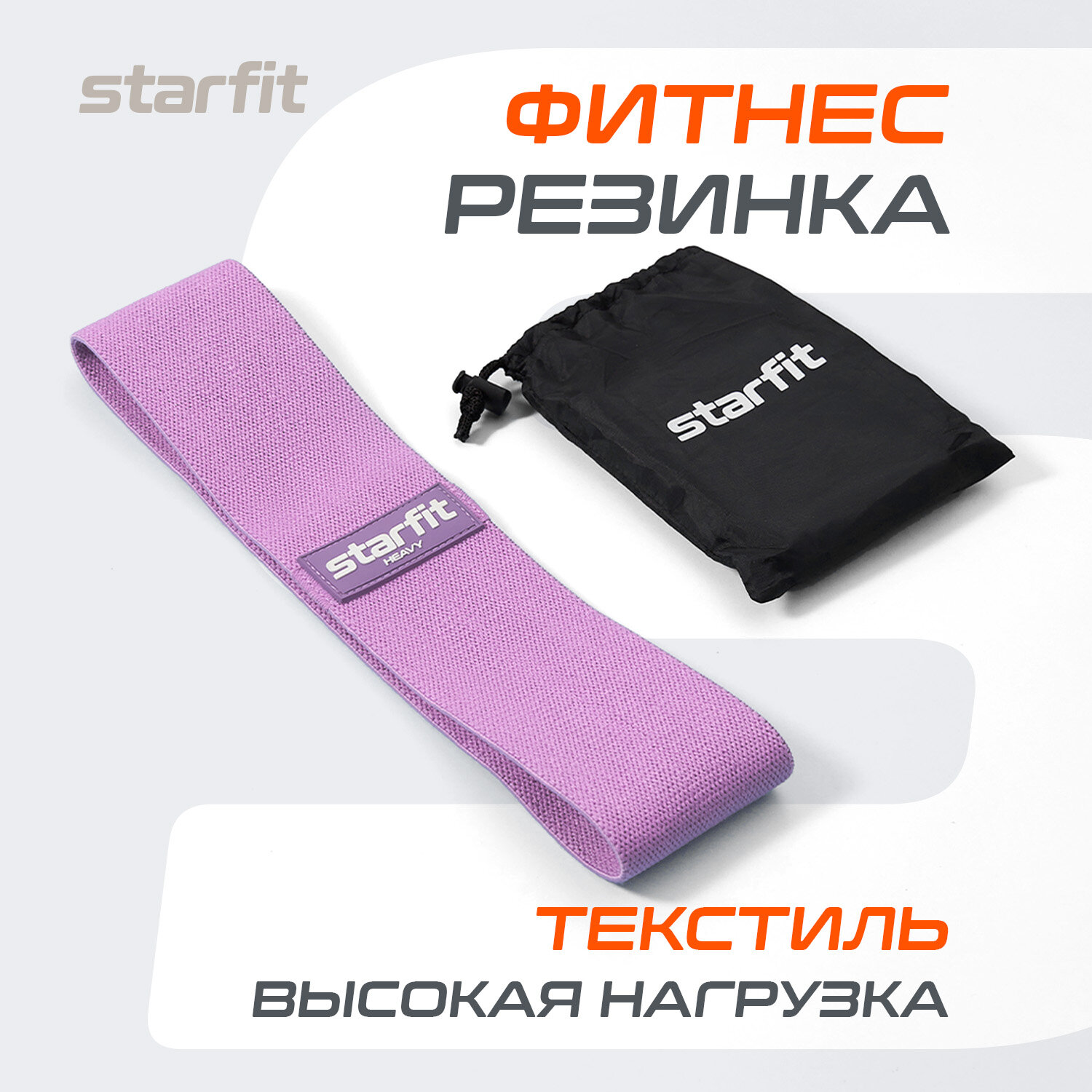 Мини-эспандер STARFIT ES-204 высокая нагрузка, текстиль, фиолетовый пастель. информация: