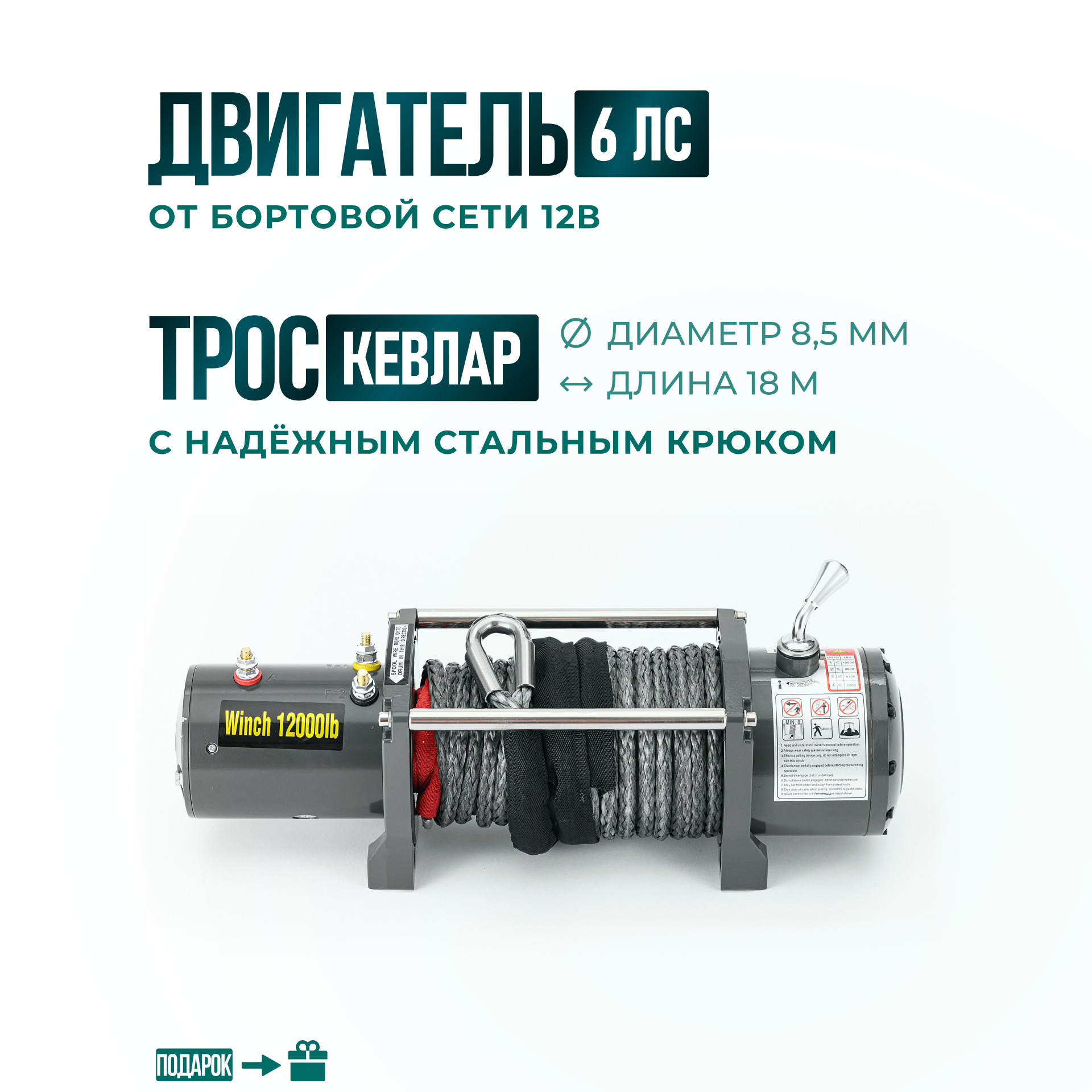 Лебедка автомобильная электрическая 12000 lbs 12V Electric Winch кевларовый трос/ автомобильная лебедка 12В грузоподъемность 5443 кг информация: