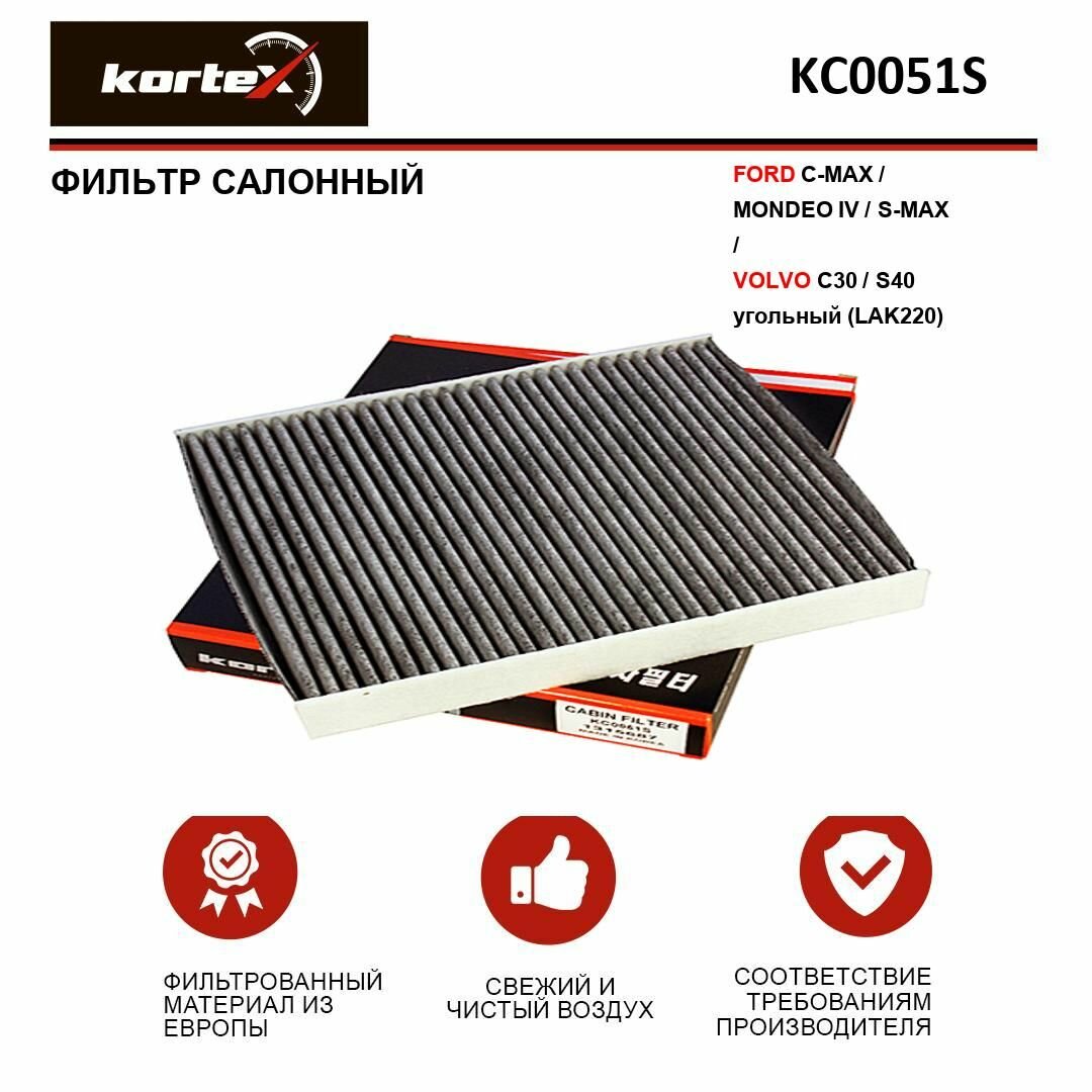 Фильтр салонный FORD C-MAX/MONDEO IV/S-MAX/VOLVO C30/S40 угольный (LAK220) KORTEX / арт. KC0051S - (1 шт)
