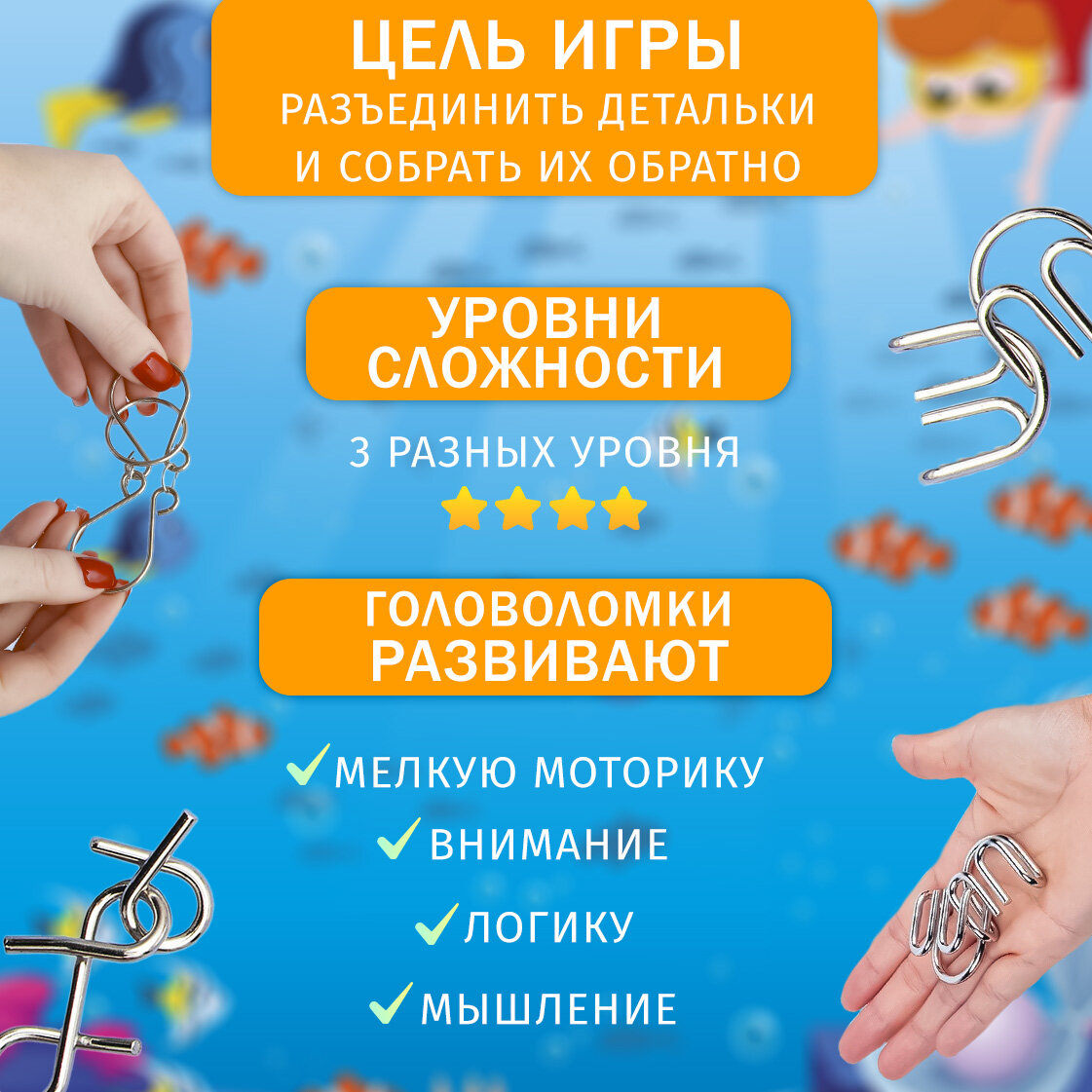 10 цен на Набор Головоломки металлические "Подводная жизнь" N 1/3, подарочный набор из 8 шт. для детей и взрослых