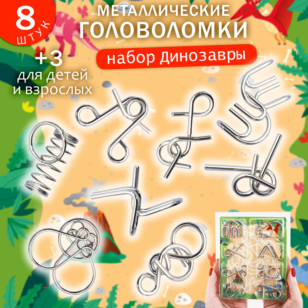 10 цен на Набор Головоломки металлические "Динозавры" N 1/3, подарочный набор из 8 шт. для детей и взрослых