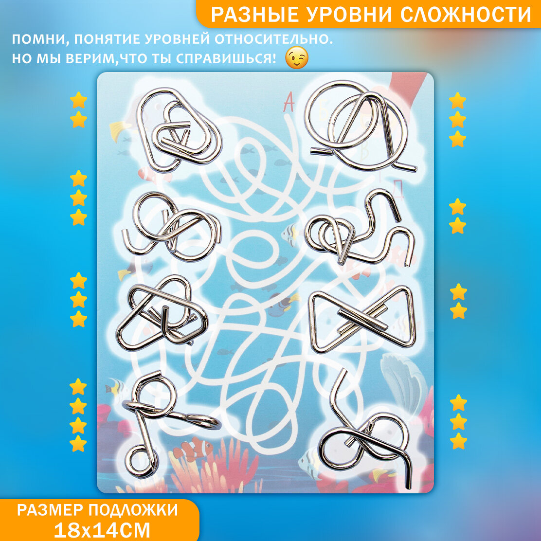 Отзывы на Набор Головоломки металлические "Подводная жизнь" N 2/3, подарочный набор из 8 шт. для детей и взрослых