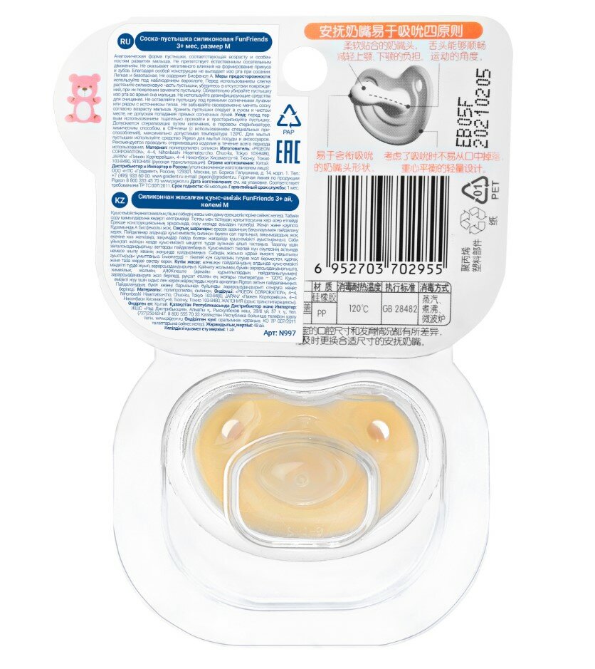 Пустышка Pigeon FunFriends "Мишка" 3+ мес (размер M) информация: