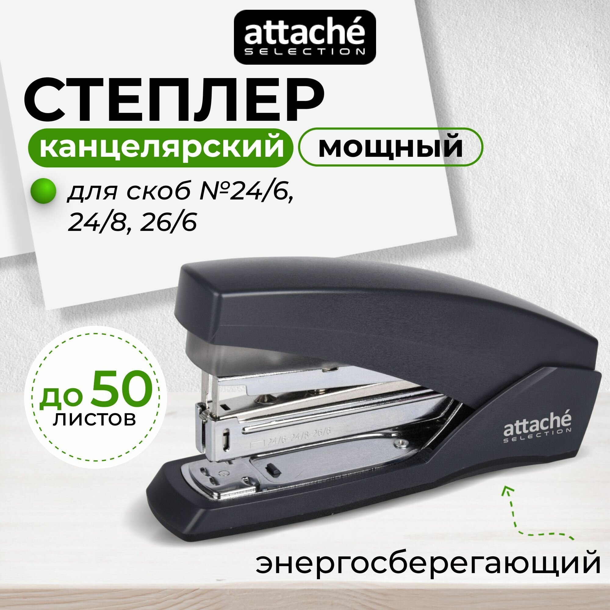 Степлер канцелярский Attache Selection, большой, мощный, скобы № 24/6, 24/8, 26/6, до 50 листов информация: