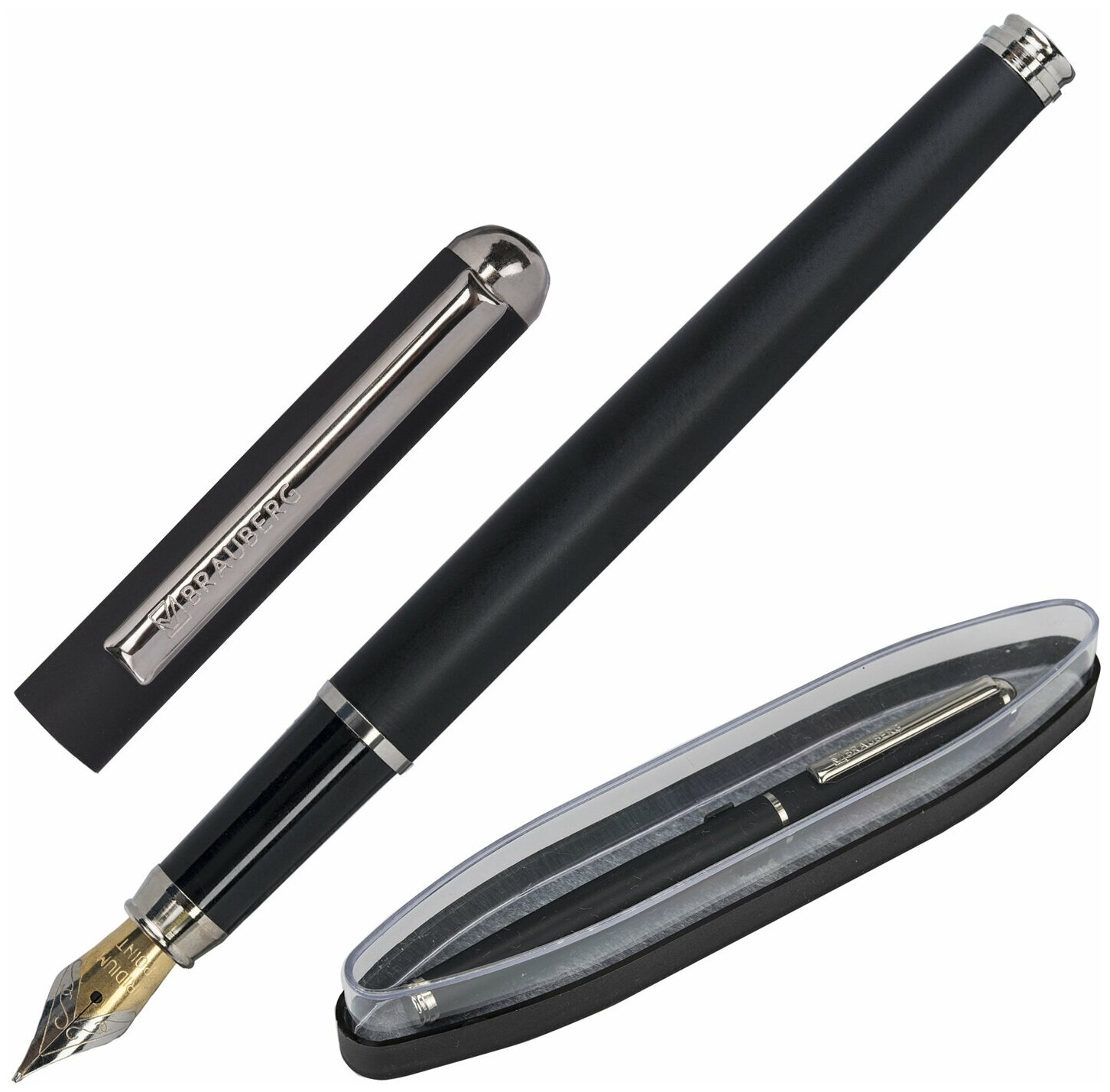 Ручка перьевая подарочная Brauberg "Larghetto", синяя, 0.25мм, корпус черный с хромированными деталями, 36шт. (143477)