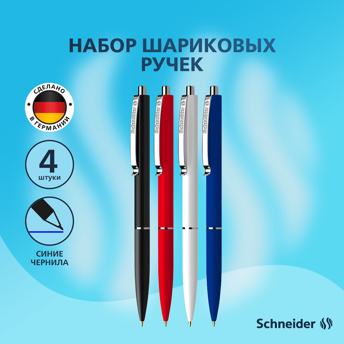 Отзывы на Ручки шариковые синие автоматические набор для школы 4 штуки/ комплект Schneider "K15" линия письма 0,5 мм, для документов, канцелярия для офиса/ сделано в Германии