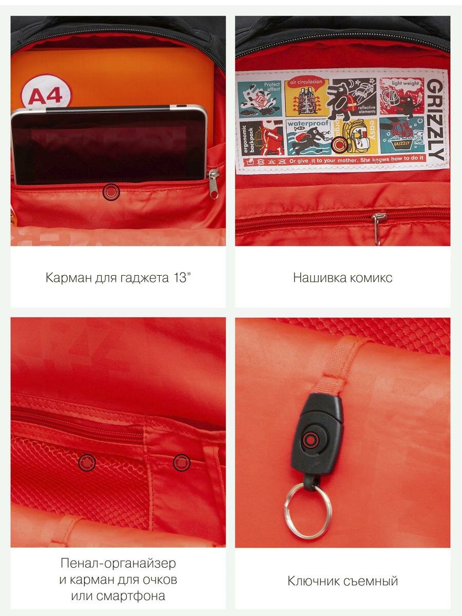 Школьный рюкзак GRIZZLY RB-356-5 черный-красный, 39x26x19 информация: