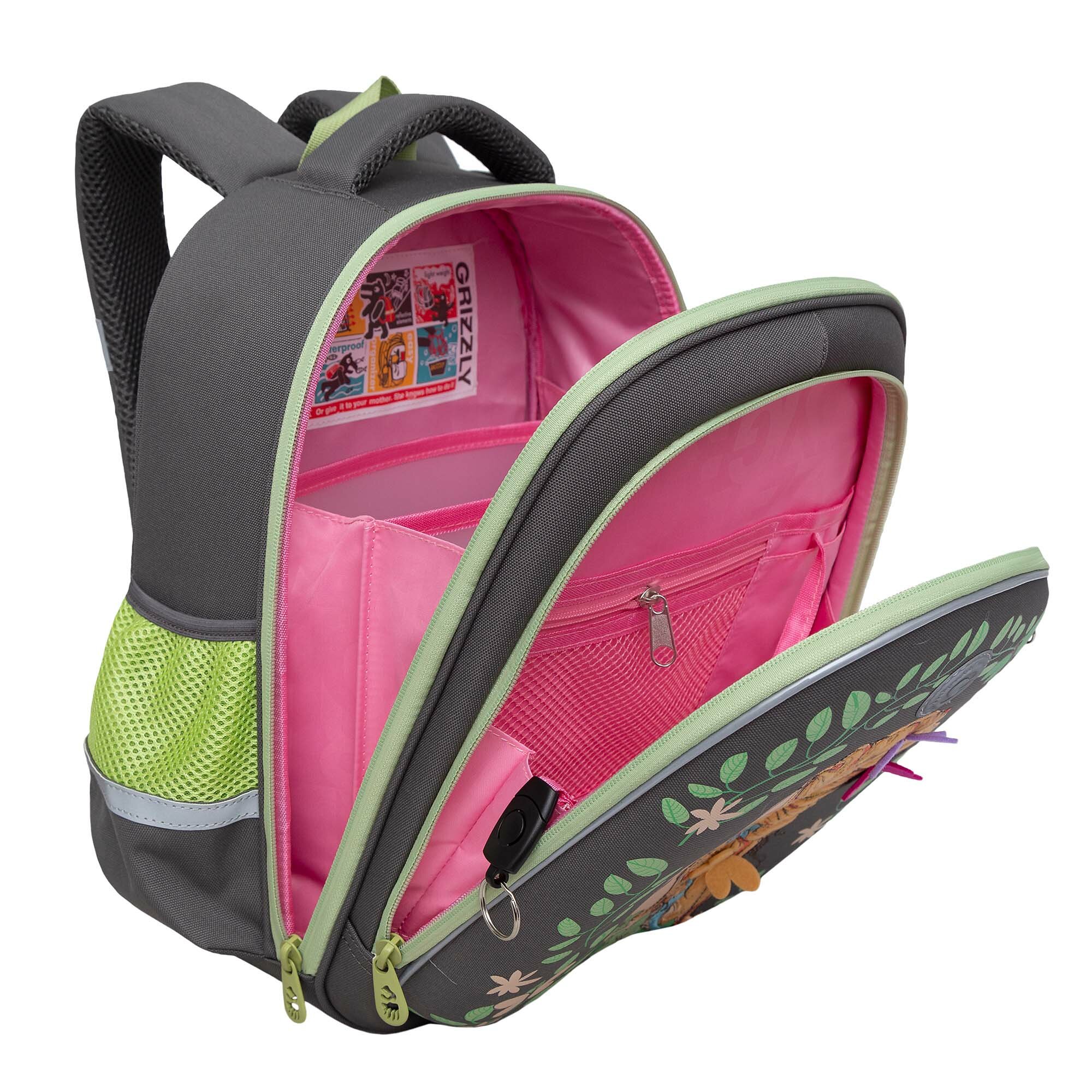 10 цен на Ранец школьный формованный GRIZZLY с анатомической спинкой, на ножках, для девочек RAz-386-3/2