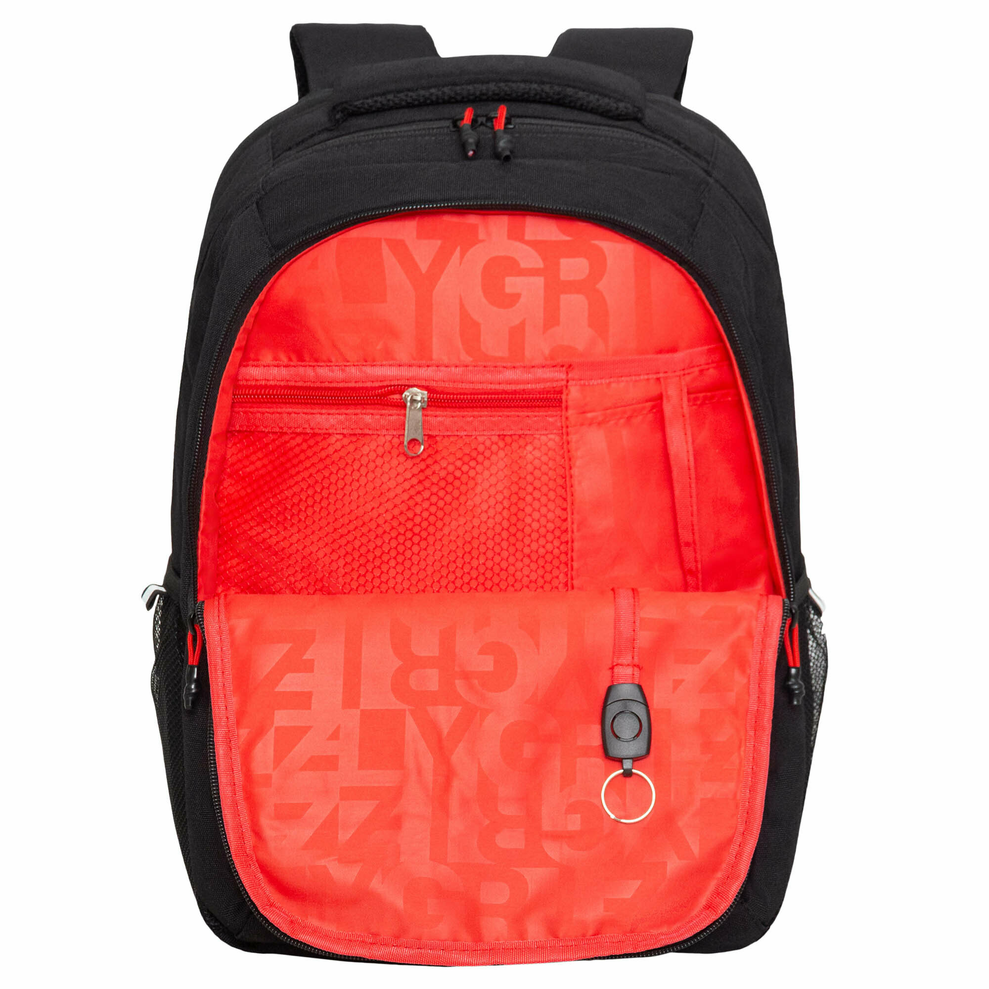 Школьный рюкзак с эргономичной спинкой GRIZZLY RU-436-2/1 черный - красный, 2 отделения, 832грамм, 47x32x17см