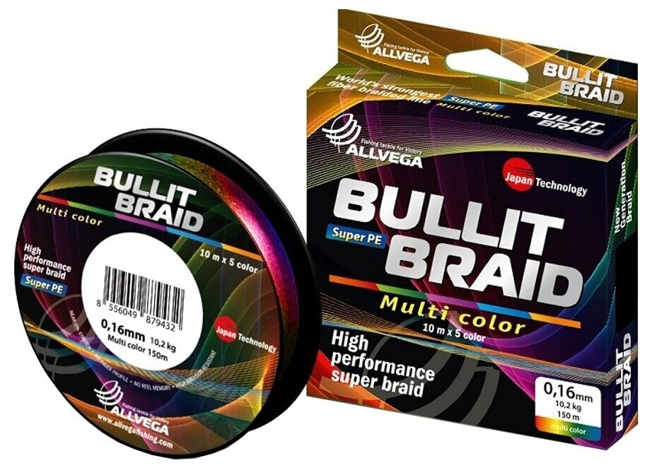 Плетеный шнур Allvega Bullit Braid Multi Color 150м 0,16мм, 10,2кг 1 080 ₽