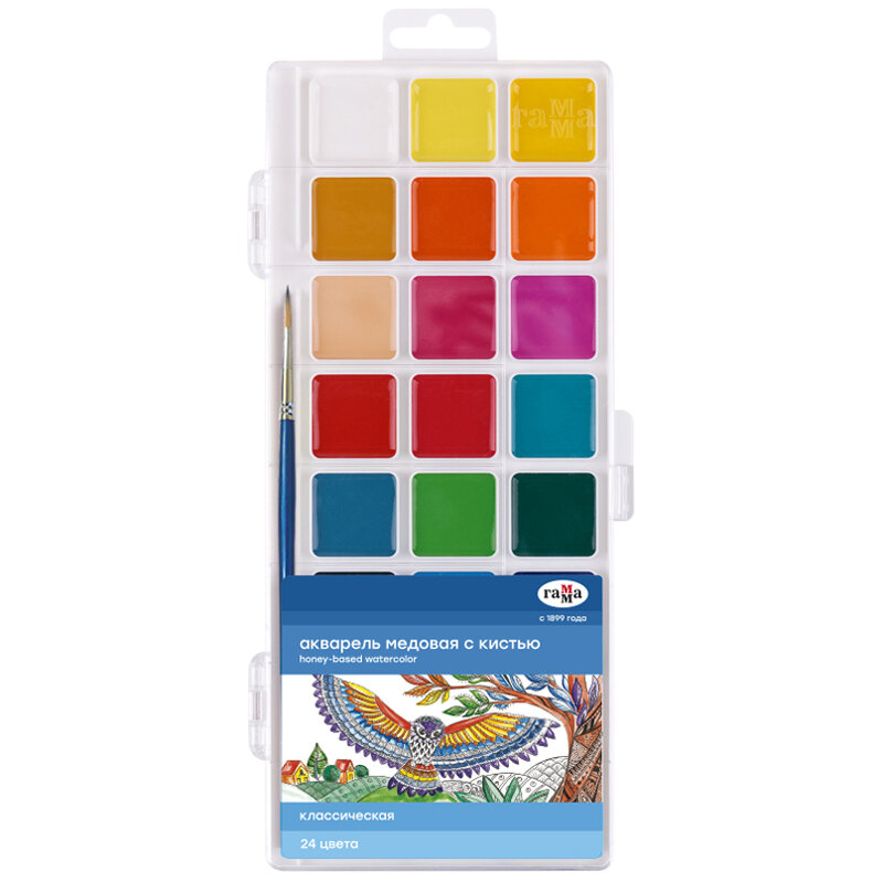 Отзывы на Комплект 17 шт, Акварель Гамма "Классическая", медовая, 24 цвета, с кистью, пластик. упак., европодвес NEW