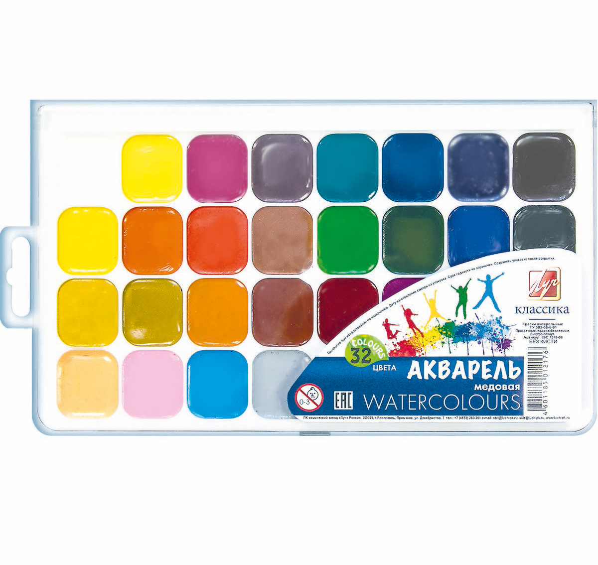 Акварель медовая "Классика" - 32 цвета, без кисти. информация: